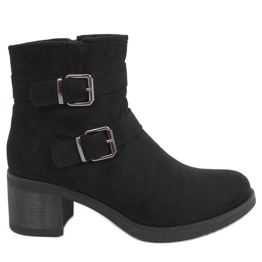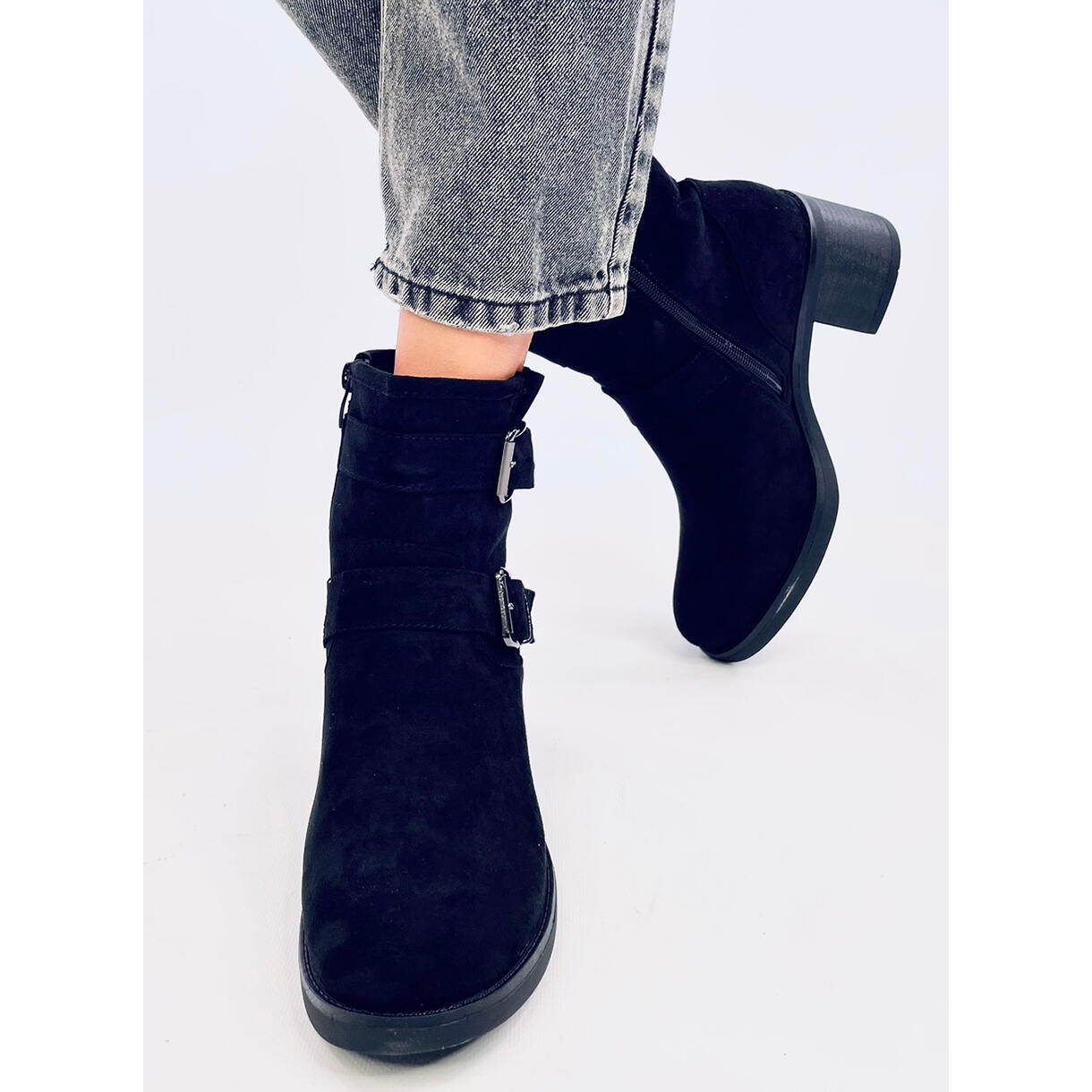 Snygga, svarta Teo svarta stövlar är den perfekta kombinationen av komfort och fashionabla utseende. Tillverkad av en trevlig för beröring av ekologisk mocka, med en isolerad inre vadderad med delikat päls, kommer de att ge värme och komfort på svalare dagar. Ett stabilt, brett klackhäl med en höjd av 6,5 cm ger en säkerhet, och det praktiska dragkedjan på sidan gör det lättare att ta på sig. Karaktären ges av effektiva spännen som betonar det moderna snittet.