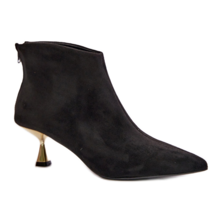 Bekvämligheten och lättheten att ta på sig en blixtlås placerad på baksidan, vilket möjliggör snabbt och bekvämt borttagning och lägger på skor. Höjden på den övre av 11 cm gör att stövlarna snyggt betonar vristen, och deras minimalistiska design utan mönster gör dem universella och lätta att stilisera.