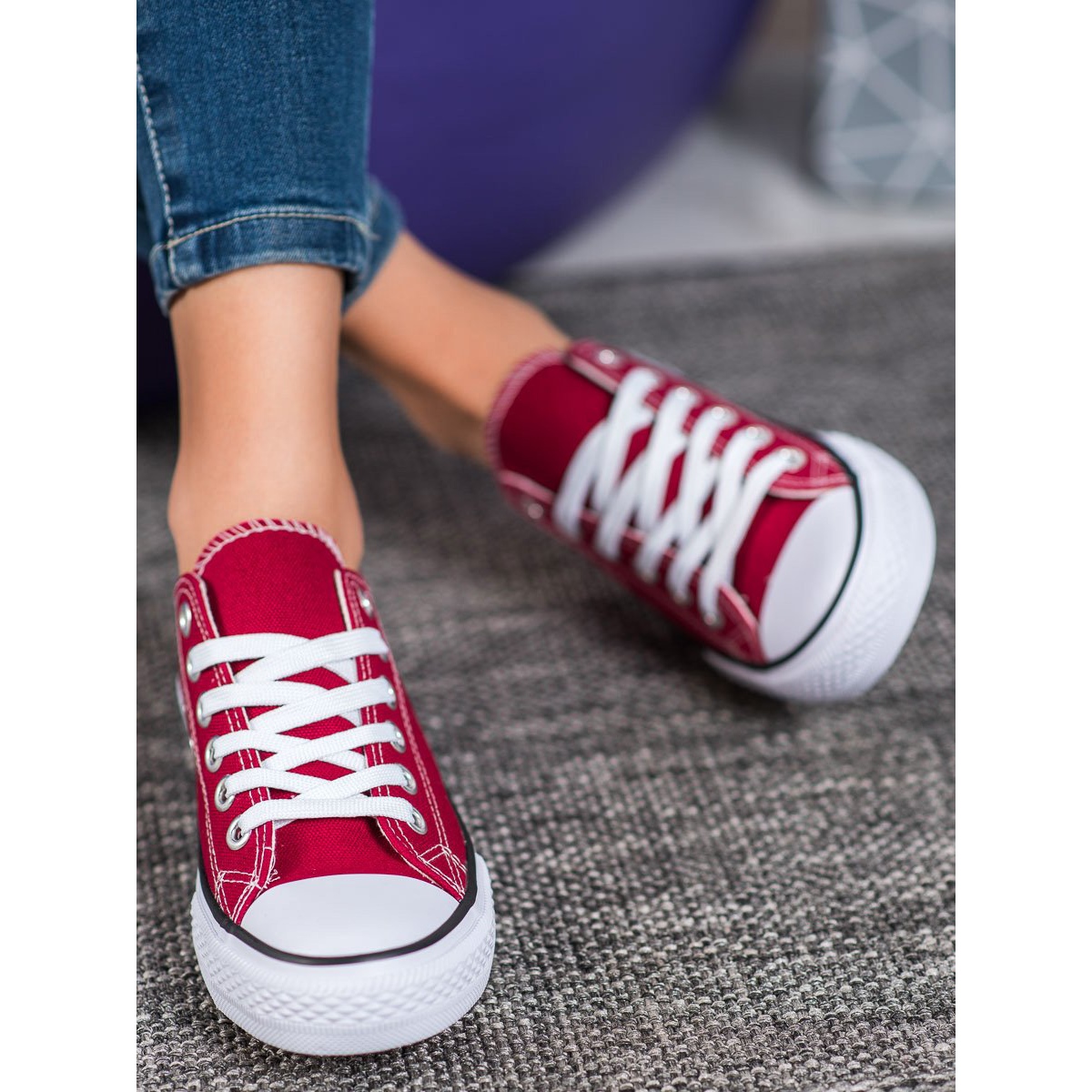 Den röda färgen är iögonfallande och passar bra till många stilar – både avslappnad och sportig. Tack vare en mjuk, inbyggd häl och en gummisula med slitbana ger dessa sneakers stabilitet och komfort varje dag. Det spelar ingen roll om du ska gå en promenad, shoppa eller träffa vänner - dessa skor kommer att fungera under alla förhållanden.