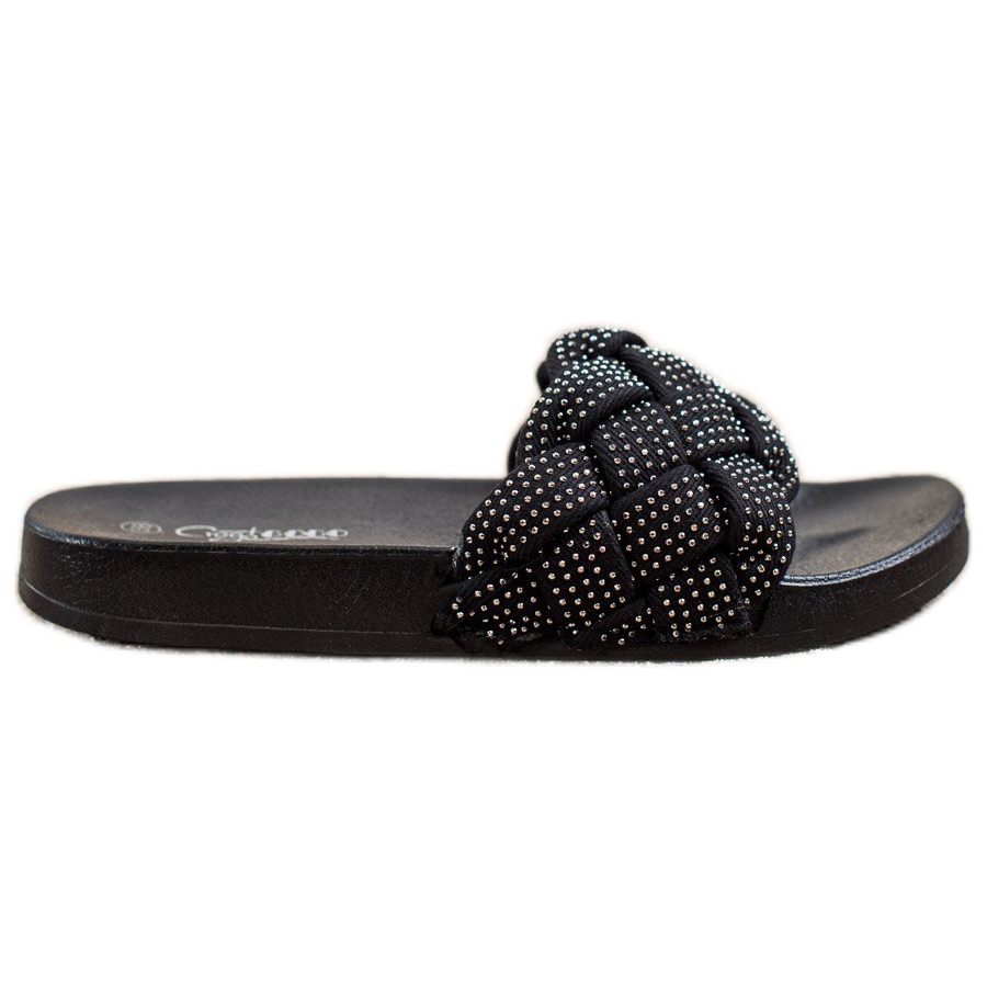 Groto Gogo Groto Gogo Textil tofflor med kristaller svart
