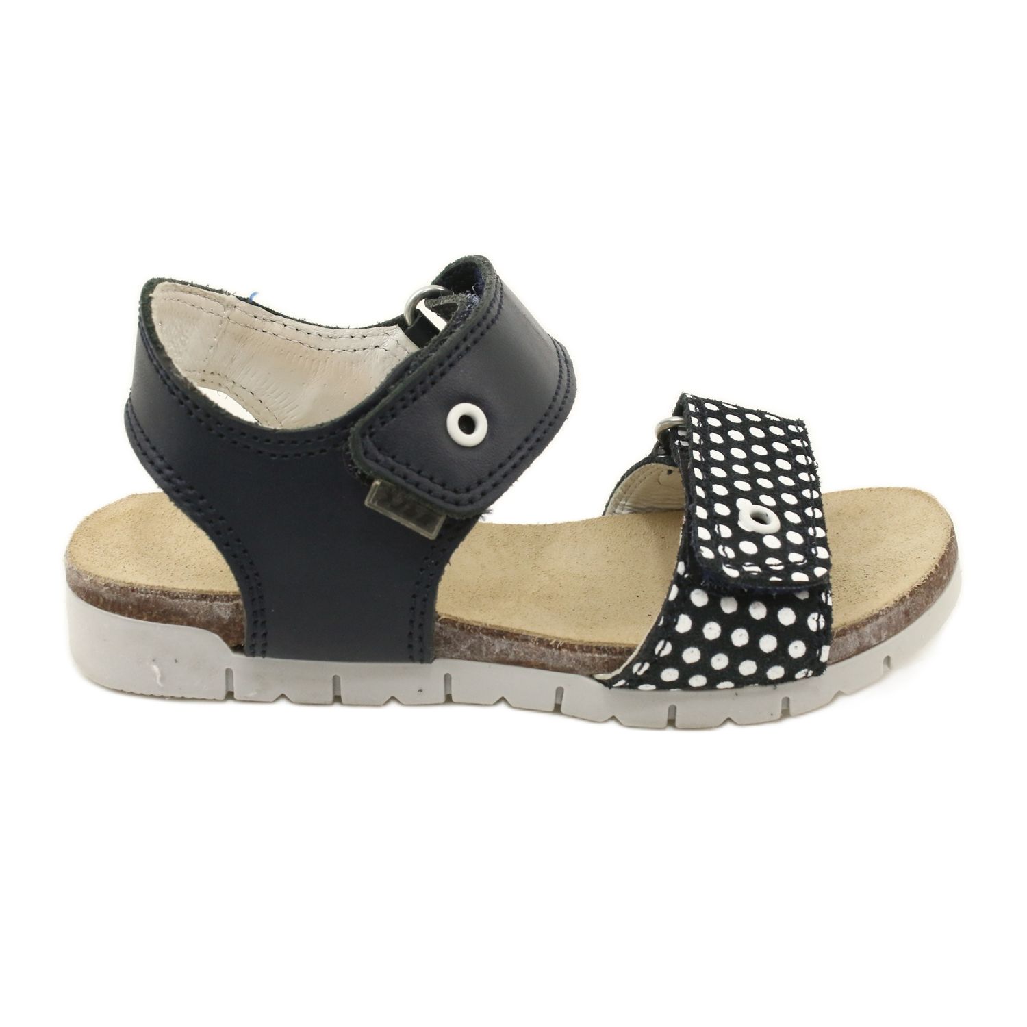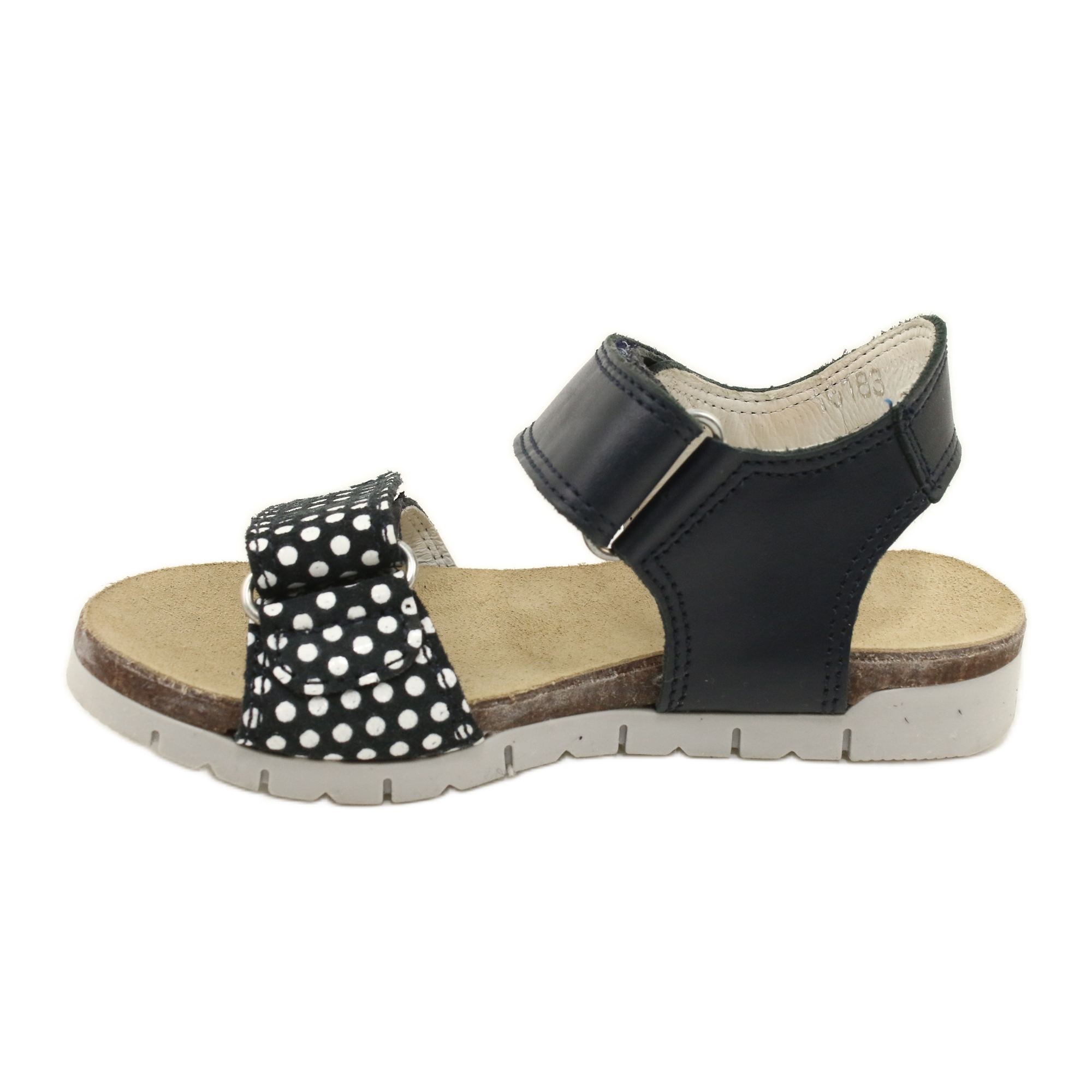 Bartek - lädersandaler för flickor, marinblå med blå prickar (modell 16183-05R)