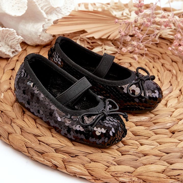 Information: Tjejernas ballerinor dekorerade med paljetter och en svart båge