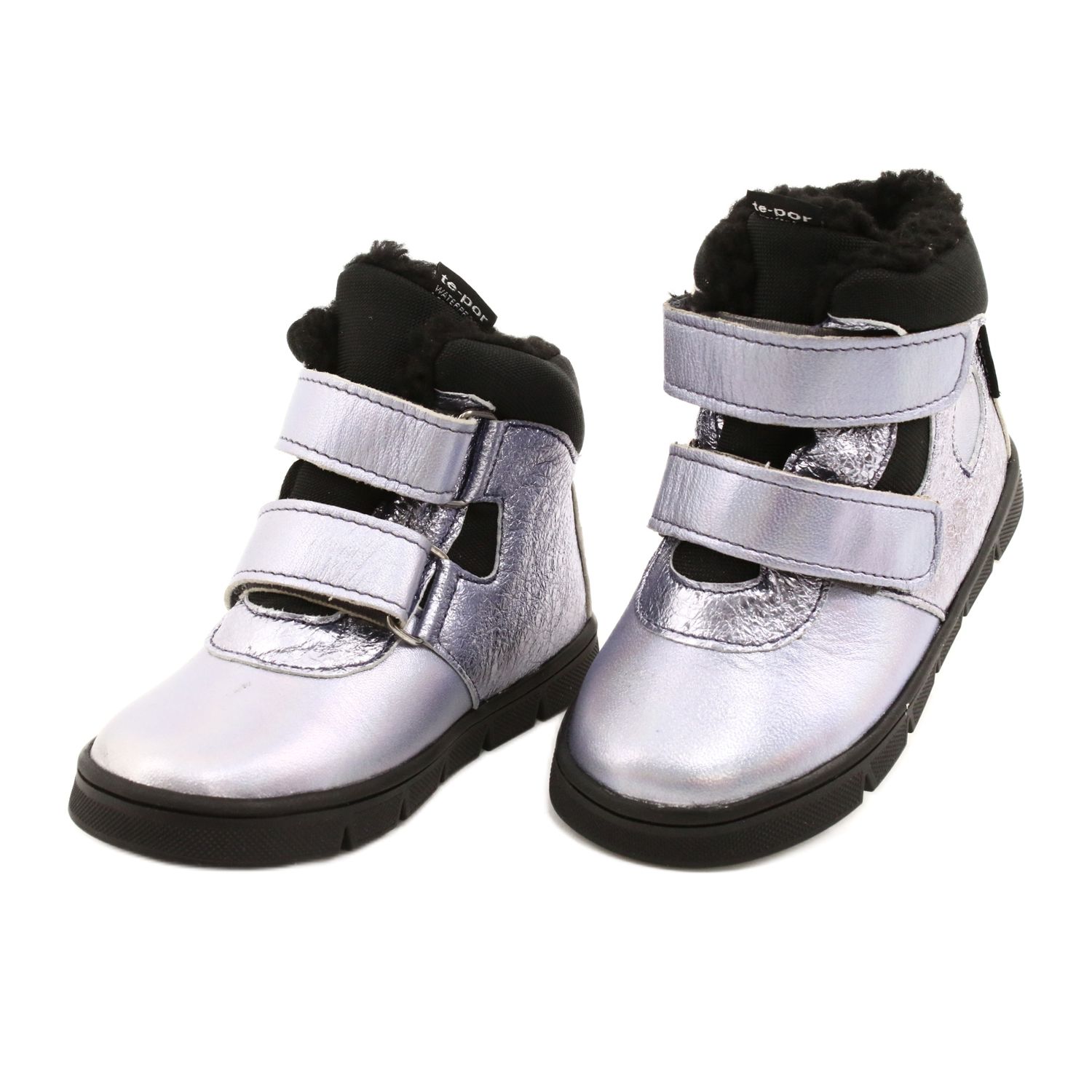 Varma och bekväma vinterstövlar för flickor, gjorda av naturläder i kombination med material, utrustat med ett vattentätt Te-Por-membran. Modellen ger skydd mot fukt och kyla, och ett praktiskt kardborrfäste gör det lättare att ta på sig och passa snabbt. Interiören som är isolerad med mjuk päls, förstyvad häl stabiliserar vristen, och den icke -slipssulan garanterar god vidhäftning på hala ytor.