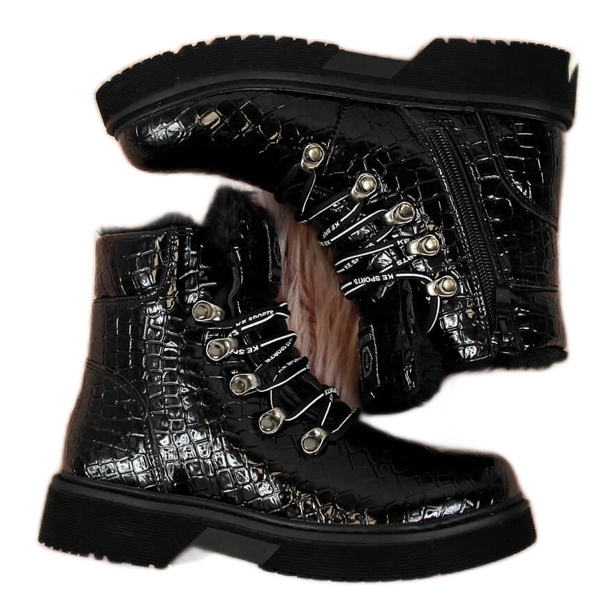 Miss❤E svartlackade krokodilflickstövlar är ett måste i varje fashionabel tjejs garderob! Dessa extremt snygga skor kombinerar komfort och härlig design. Tillverkade av högkvalitativt ekologiskt lackläder ser de eleganta och imponerande ut och matchar perfekt de senaste trenderna.