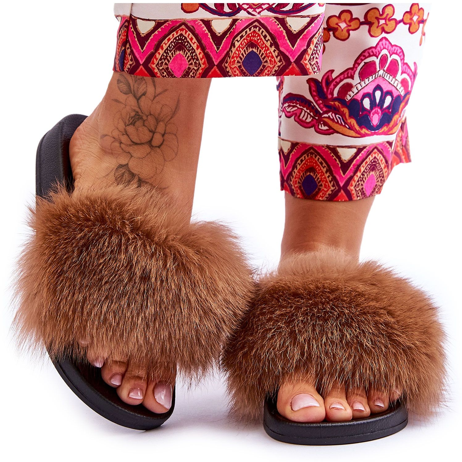 BM BM Tofflor för kvinnor med naturlig pälsbrun Naturis