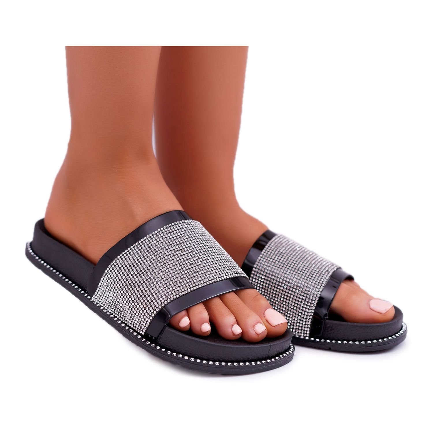 Detaljer: FRBS Tofflor för kvinnor, profilerade med cubic zirconias, Black Rentre svart