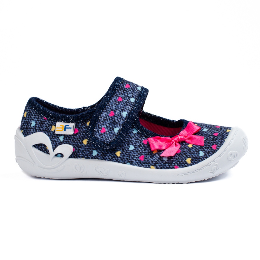 De inre och yttre delarna av tofflorna är gjorda av 100% textilmaterial, vilket säkerställer mjukhet och komfort för barn. Innersulan i textil anpassar sig till fotens form, vilket ger extra dämpning när du går. Den rent textila konstruktionen gör det också lättare att upprätthålla skohygienen.