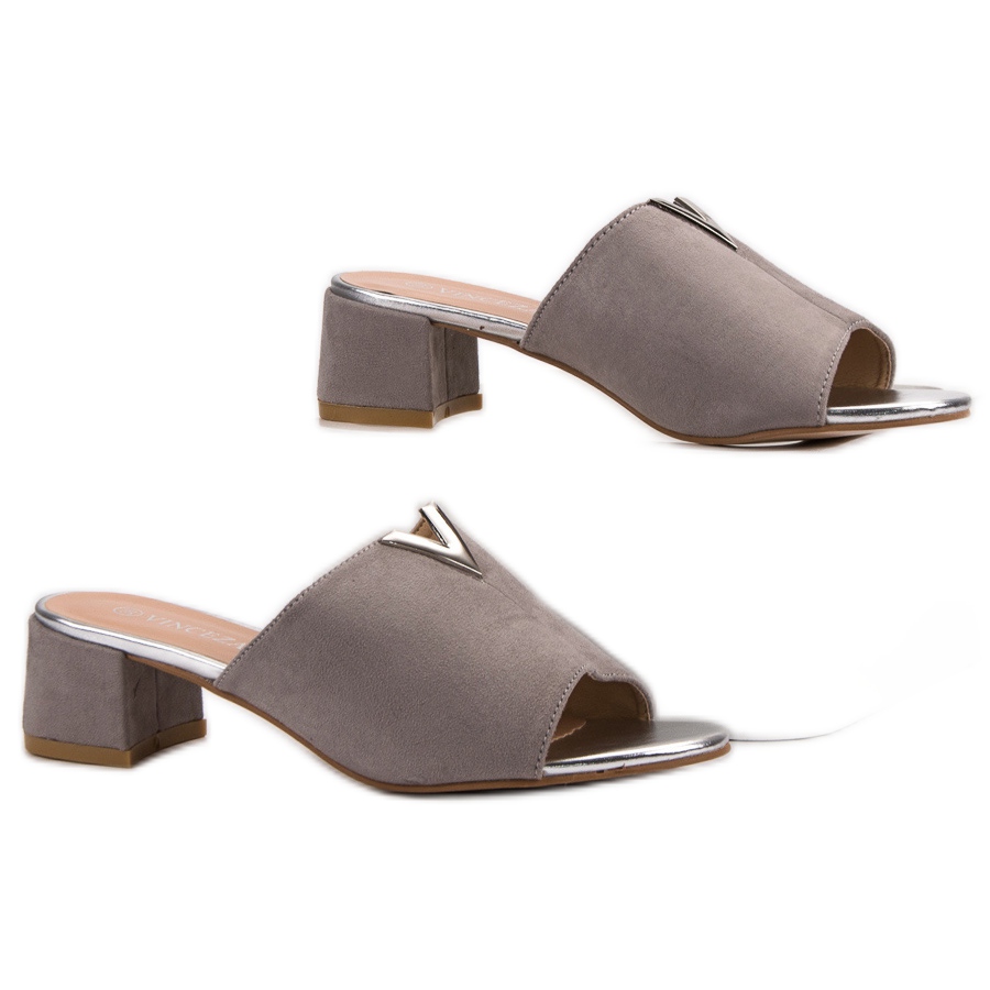 VINCEZA flipflops i mocka i en elegant, grå nyans är ett perfekt val för sommardagar. De är gjorda av ekologisk mocka av hög kvalitet och kombinerar modern design och bärkomfort. Den 5 cm platta hälen säkerställer stabilitet och komfort, vilket gör dem perfekta för både kontoret och möten med vänner.