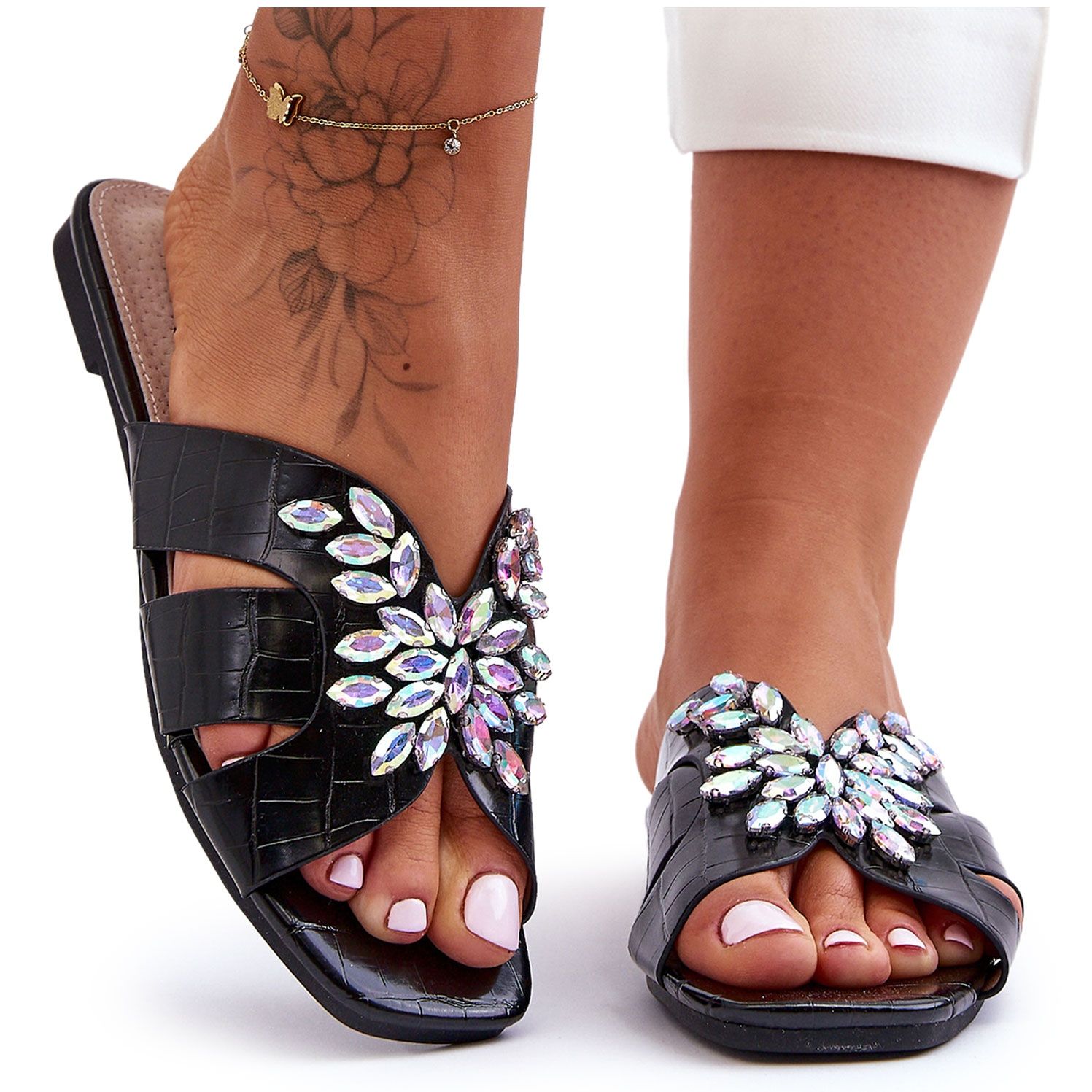 S.Barski Tofflor med dekorativa stenar S.Barski 617-22 Svart