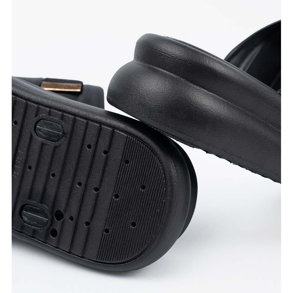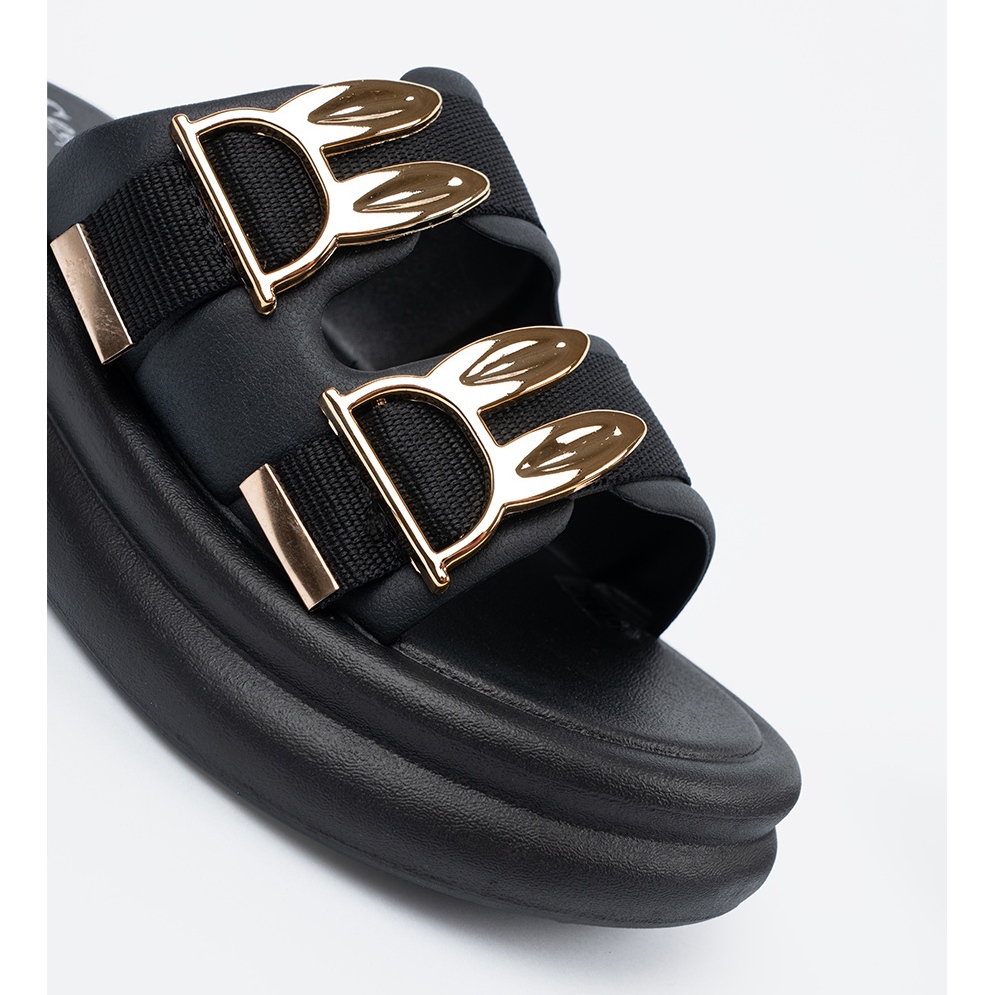 Information: Seastar Tofflor med gyllene spännen på plattformen svart