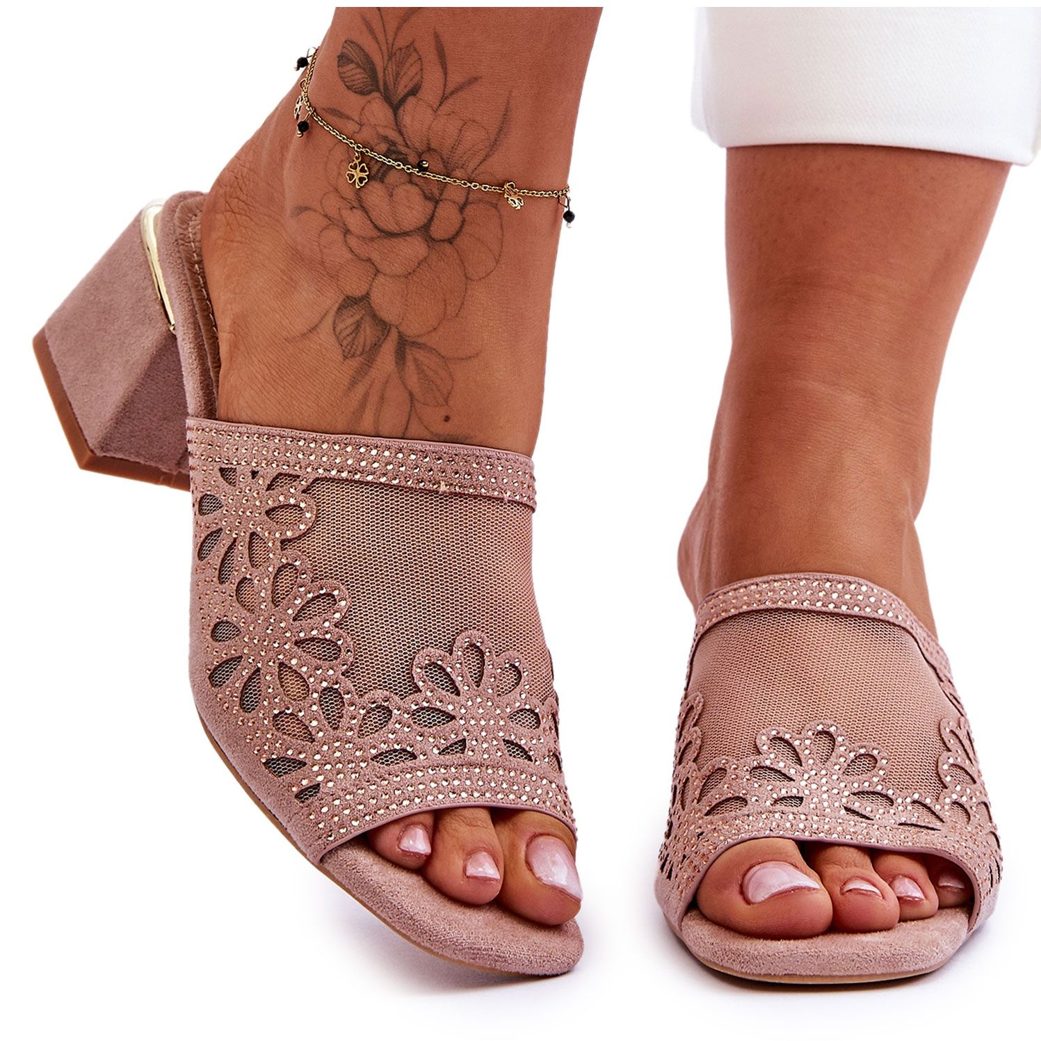 Detaljer: Tofflor med klackar med mesh S.Barski KV-612-1 Naken beige