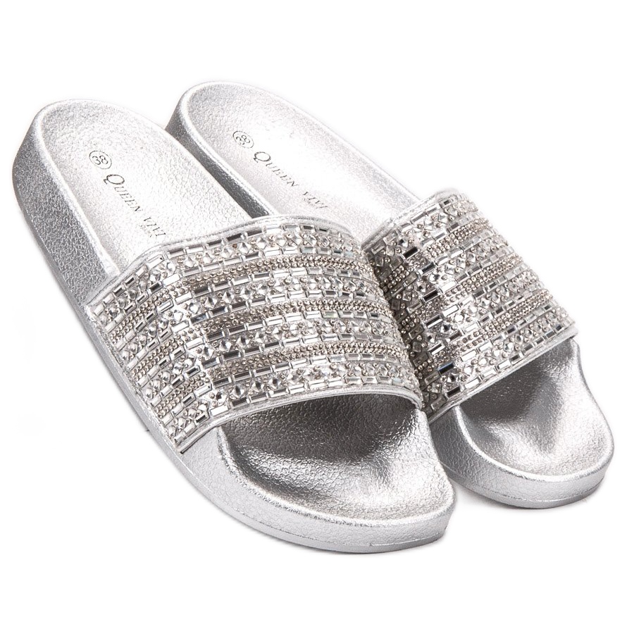 Vi presenterar flip-flops med kristaller från märket Queen Vivi - en oumbärlig del av din sommargarderob som kommer att tillföra elegans till varje styling. Dessa bekväma flip-flops i en elegant grå färg är ett perfekt val för våren och sommaren, perfekt matchande både lätta klänningar och avslappnade jeansbyxor.