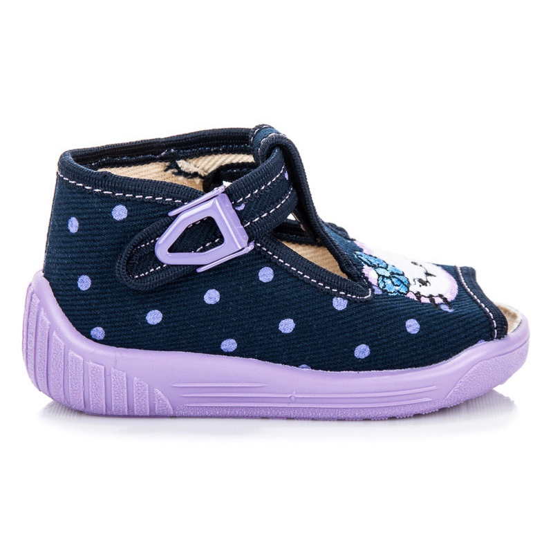 Reweks Slippers med öppen tå, blå, är praktiska och snygga skor för små tjejer som kombinerar komfort och tilltalande utseende - perfekta för både dagis och hemmabruk.