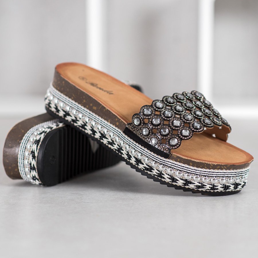 Detaljer: Renda Tofflor Med Prydnader På Plattformen svart
