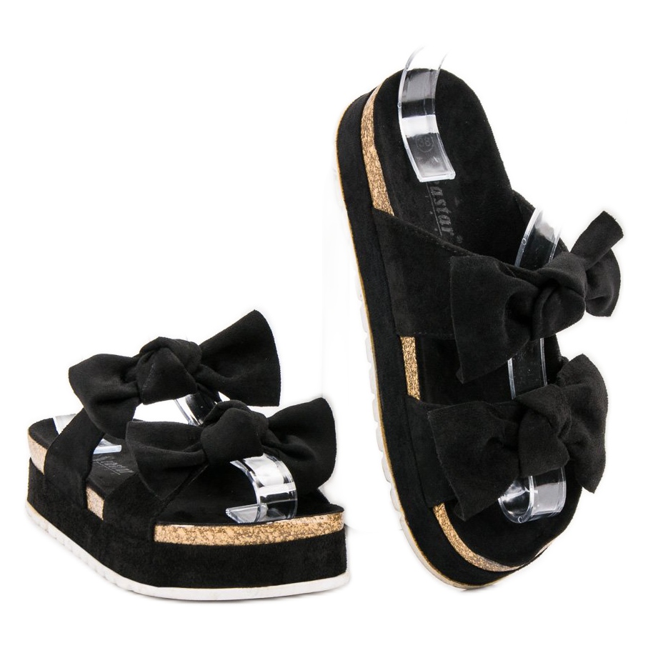 Rosetter på toppen av skorna ger dem en charmig karaktär, vilket gör dem till en unik accent i garderoben för varje modern kvinna. Den 4 cm höga plattformen säkerställer komfort vid varje steg, och deras minimalistiska design gör att de matchar många sommaroutfits - från luftiga klänningar till figursydda shorts.