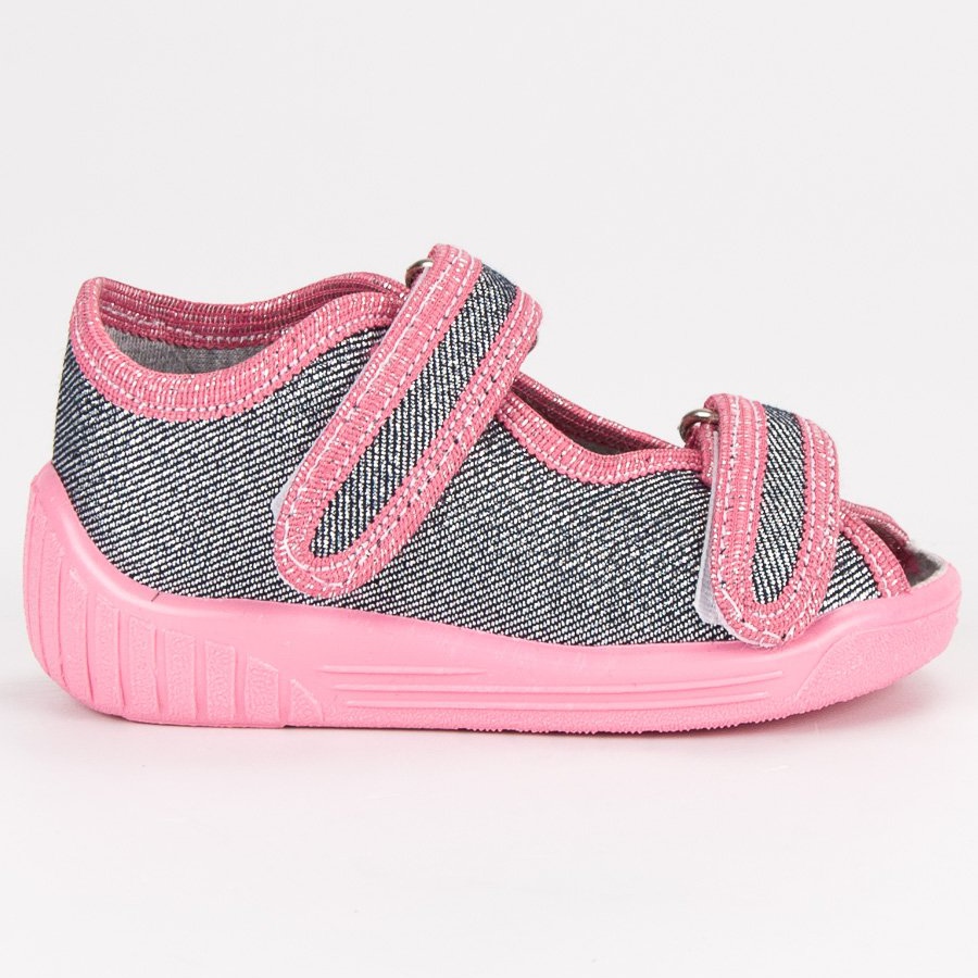 Gråa och rosa tofflor med kardborreband från Butymodne är ett bekvämt och praktiskt alternativ för tjejer - de kommer att fungera bra hemma, på dagis, i skolan och på gården. Tillverkade av mjukt textilmaterial, med ett naturligt läderinlägg, garanterar de komfort att bära hela dagen. Gummisulan med slitbana förbättrar greppet och minskar halkrisken och kardborreknäppningen gör det enkelt att ta på och anpassa skorna efter foten snabbt.