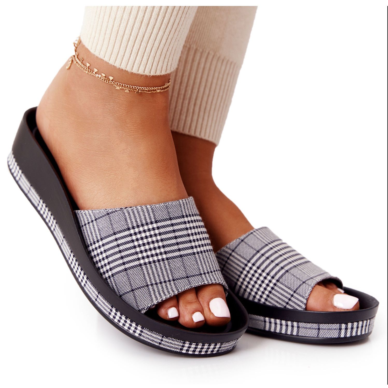 Information: Tofflor På Kil Vinceza 21-17113 Grå Check vit svart