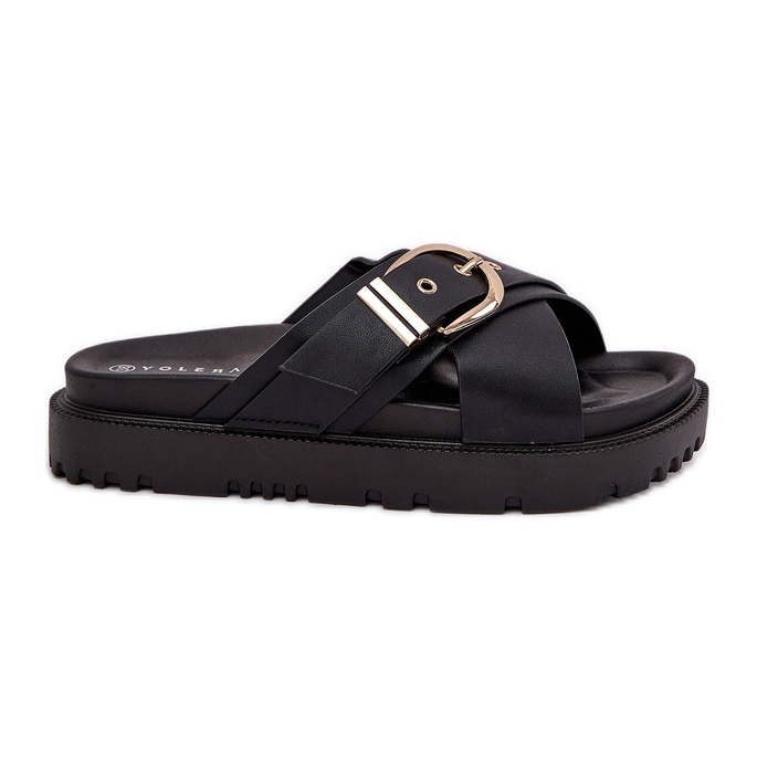 Detaljer: Tofflor på plattformen med ett svart spänne