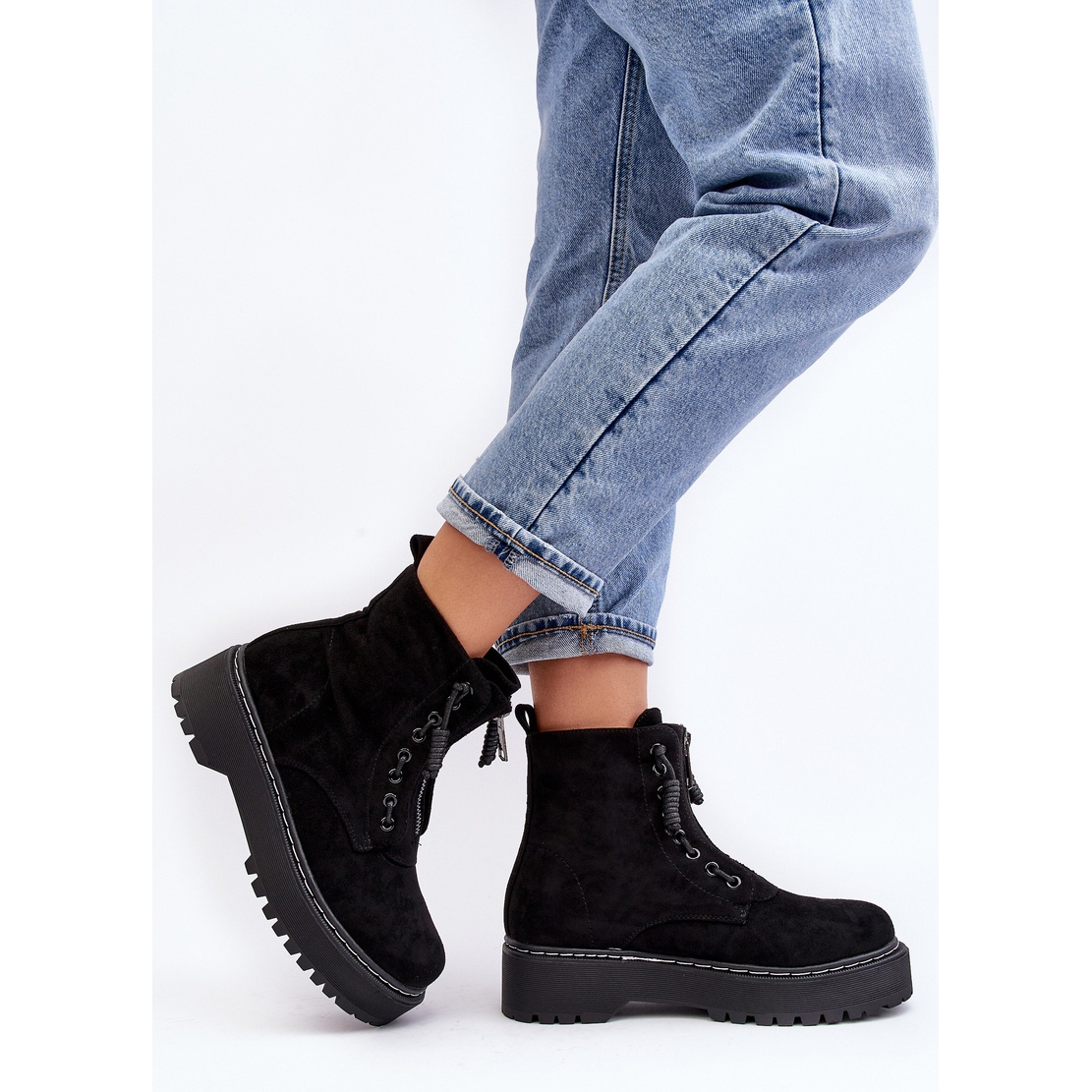 Inna marka Trapper ankelstövlar för kvinnor i mocka på en tjock sula med dragkedja, svart Edivame