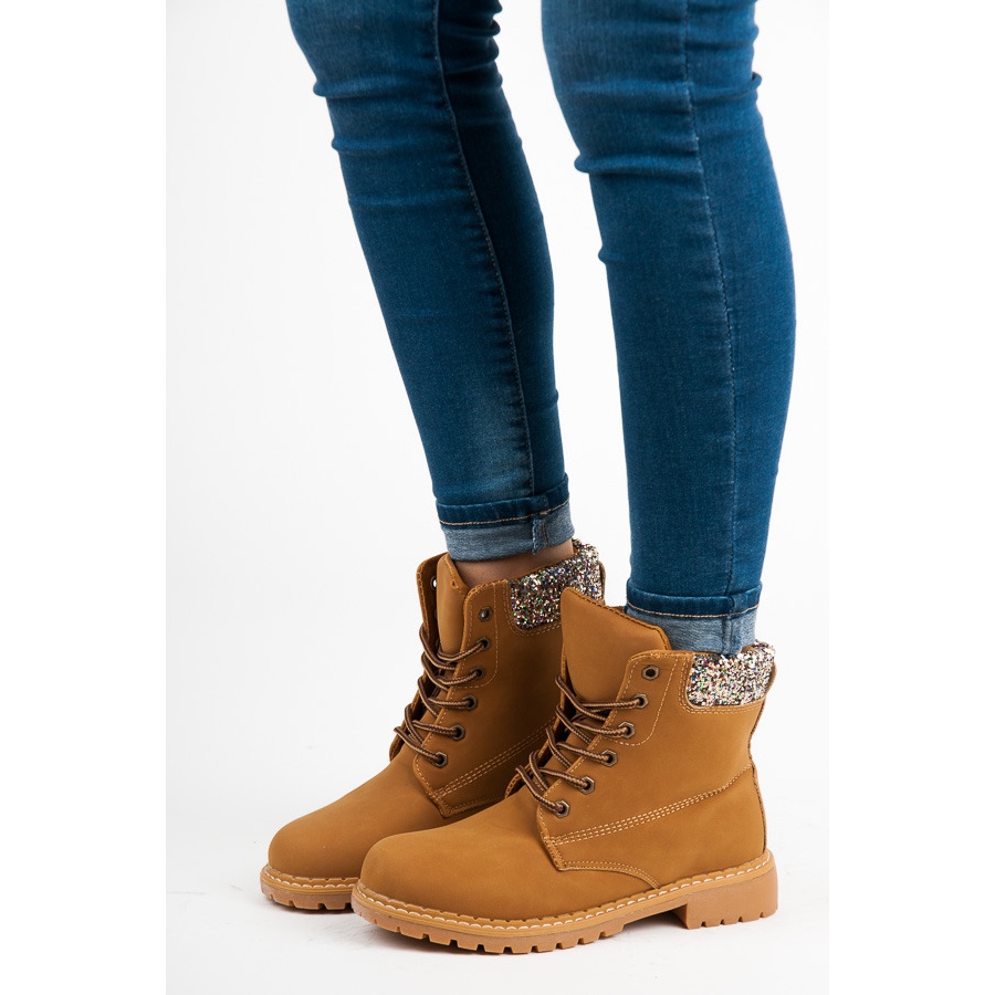 Ankelhöjden ger karaktär, och den bruna och beiga färgen gör att stövlarna matchar många stilar – både jeans och kjolar. Tack vare bristen på isolering är de perfekta för varmare dagar, och deras annorlunda mönster med glitteraccenter kommer alltid att göra dig i centrum för uppmärksamheten.