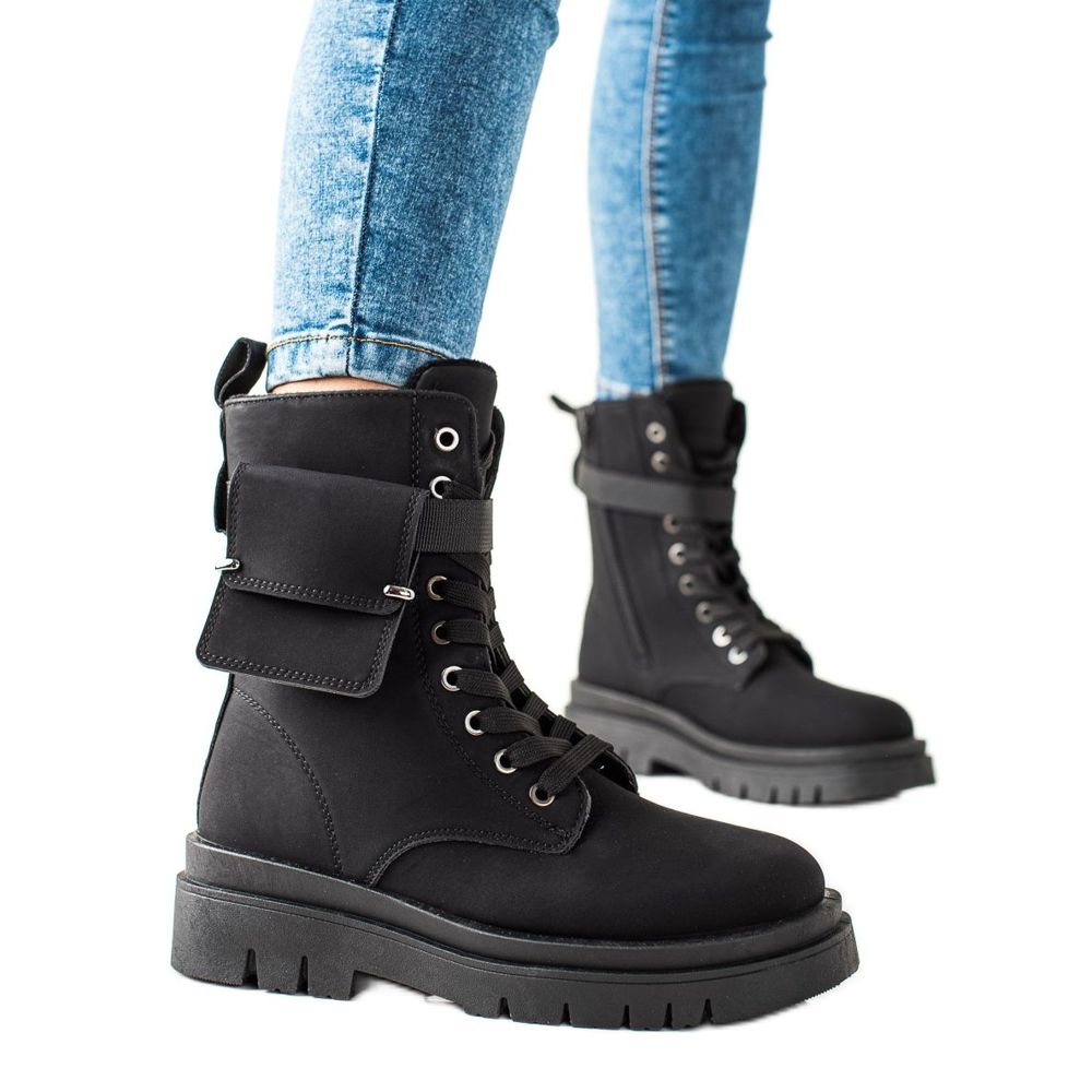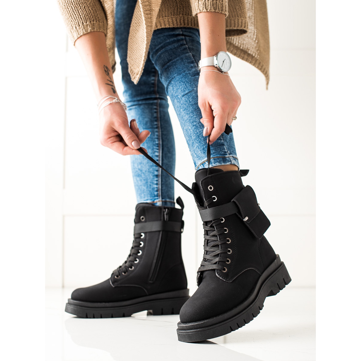 Detaljer: TRENDI Trappstövlar med snörning och ficka svart