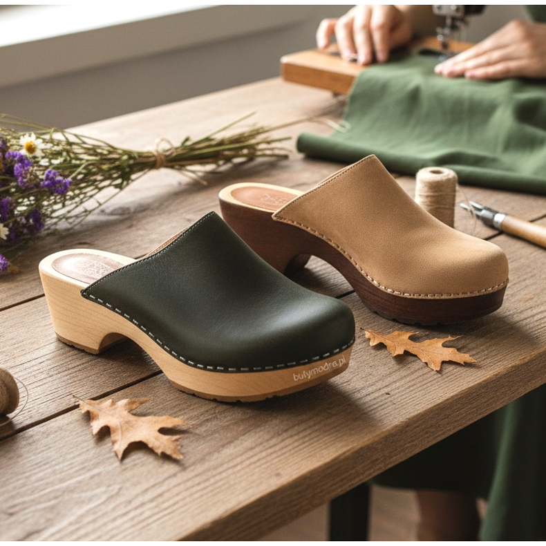 Utbudet av träskor idag är imponerande brett. Traditionella träskor med träsula och ovandel i läder är en klassiker som alltid kommer att fungera bra för entusiaster av skandinavisk stil. Modeller i naturligt läder i nyanser av konjak, svart eller beige är de mest mångsidiga versionerna.