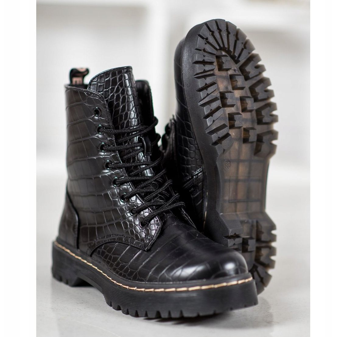 Lär känna de fashionabla SHELOVET-arbetarna i en elegant svart färg - det perfekta valet för kvinnor som värdesätter stil och komfort! Dessa unika stövlar njuter av en klassisk finish som passar perfekt med olika garderobselement, så att du kan skapa både vardagliga och mer uttrycksfulla stilar.