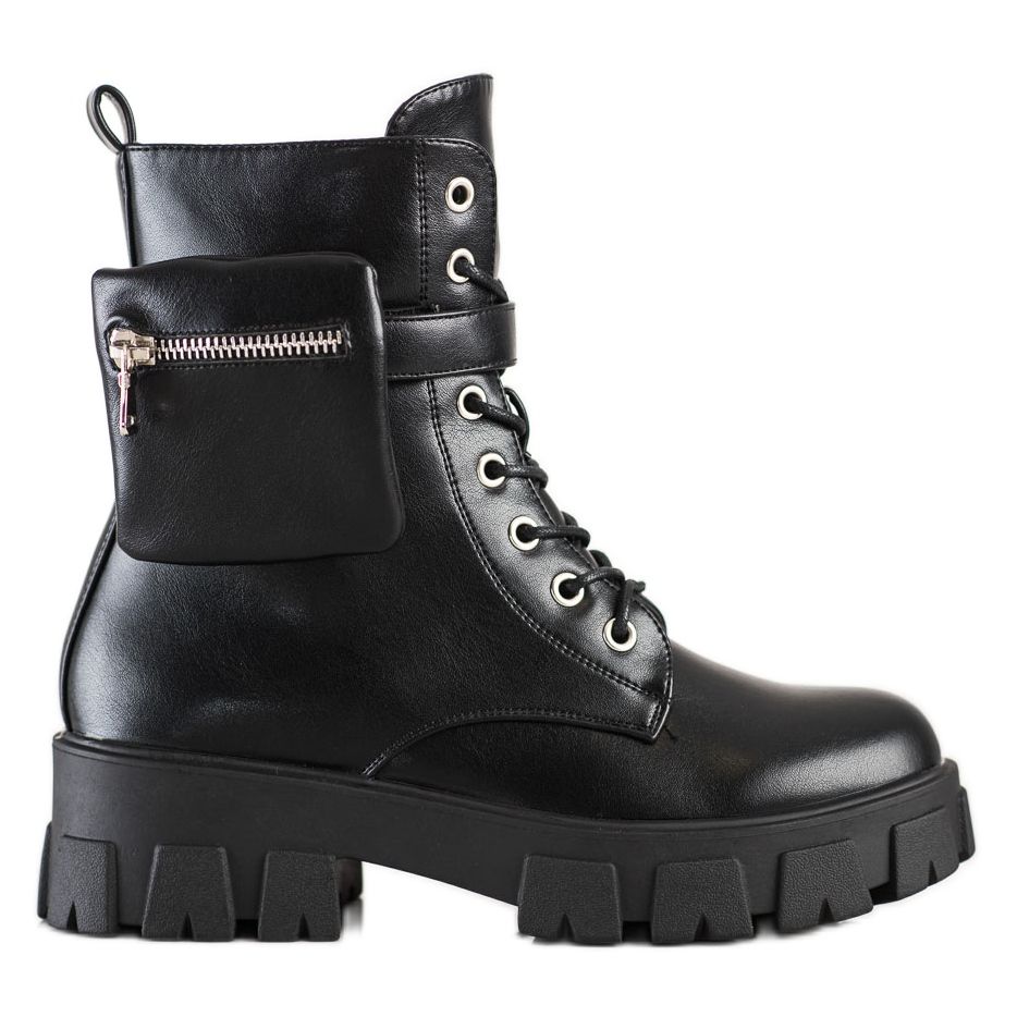 Svarta arbetsskor gjorda av högkvalitativt ekologiskt läder garanterar ett fantastiskt utseende och komfort att bära. En rund tå och en mjuk, inbyggd häl gör dem extremt bekväma, och deras klassiska, minimalistiska design utan mönster passar perfekt till aktuella modetrender. Den övre höjden på 16 cm och bredden på 20 cm gör att de sitter perfekt på benet.