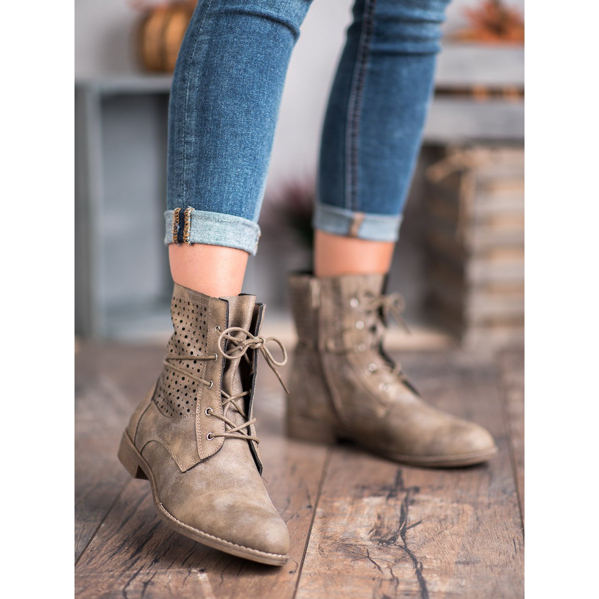 Upptäck unik stil och komfort med fashionabla Groto Gogo ankelboots med snörning i en vacker grön färg! Dessa ankelstövlar för kvinnor, gjorda av ekologiskt läder, kombinerar perfekt modern design med funktionalitet, vilket gör dem till ett idealiskt val för dagligt bruk.