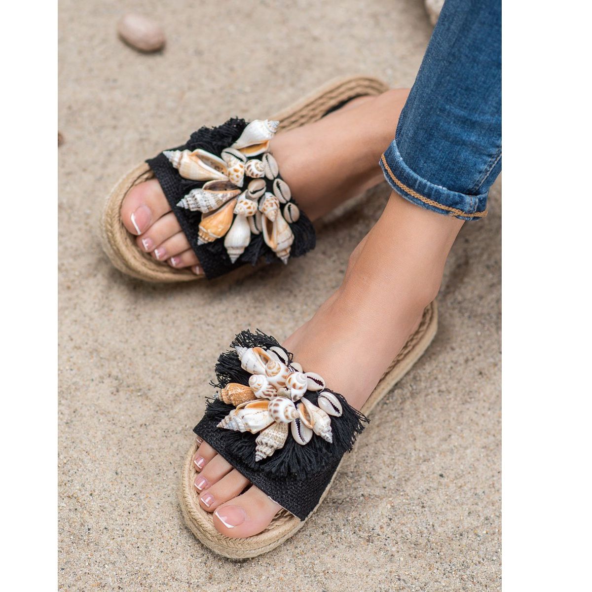 Fashionabla Seastar skalflip-flops är ett måste för sommardagar och kvällar. Dessa unika svarta flip-flops kombinerar elegans och en lös, avslappnad stil som perfekt matchar semesteratmosfären. Tack vare de iögonfallande skalen, lockar flip-flops uppmärksamhet och ger karaktär till varje styling.