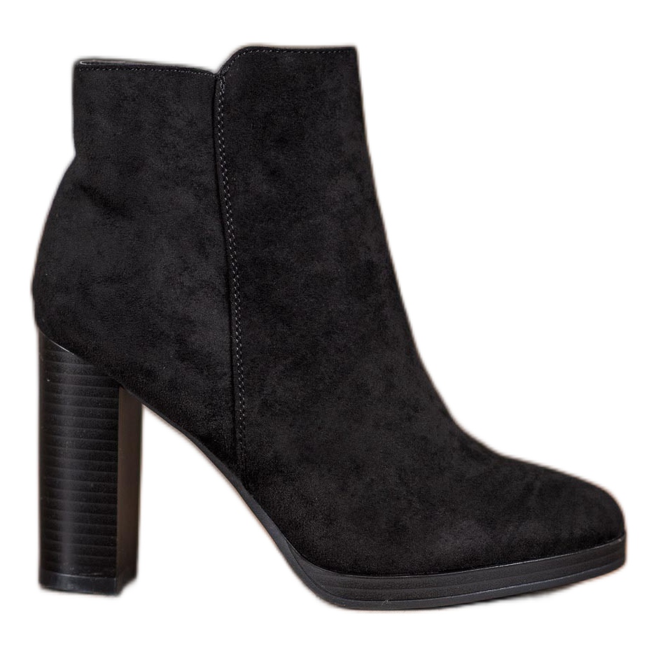 Super Me Fashionabla högklackade ankelboots är det perfekta valet för kvinnor som vill kombinera elegans med komfort. Dessa svarta stövlar gjorda av ekologiskt mockaskinn är synonymt med komfort och stil som glädjer alla älskare av modeaccessoarer.