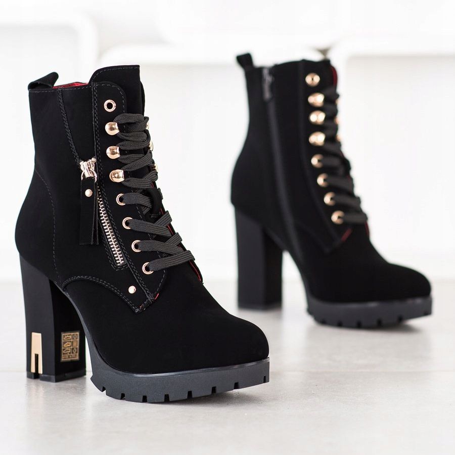Upptäck unika svarta högklackade ankelboots från det välkända Super Mode-märket, som har blivit en oumbärlig del av varje moderiktig garderob. Dessa snygga ankelboots matchar perfekt nuvarande trender och kombinerar casual, rock och modestil.