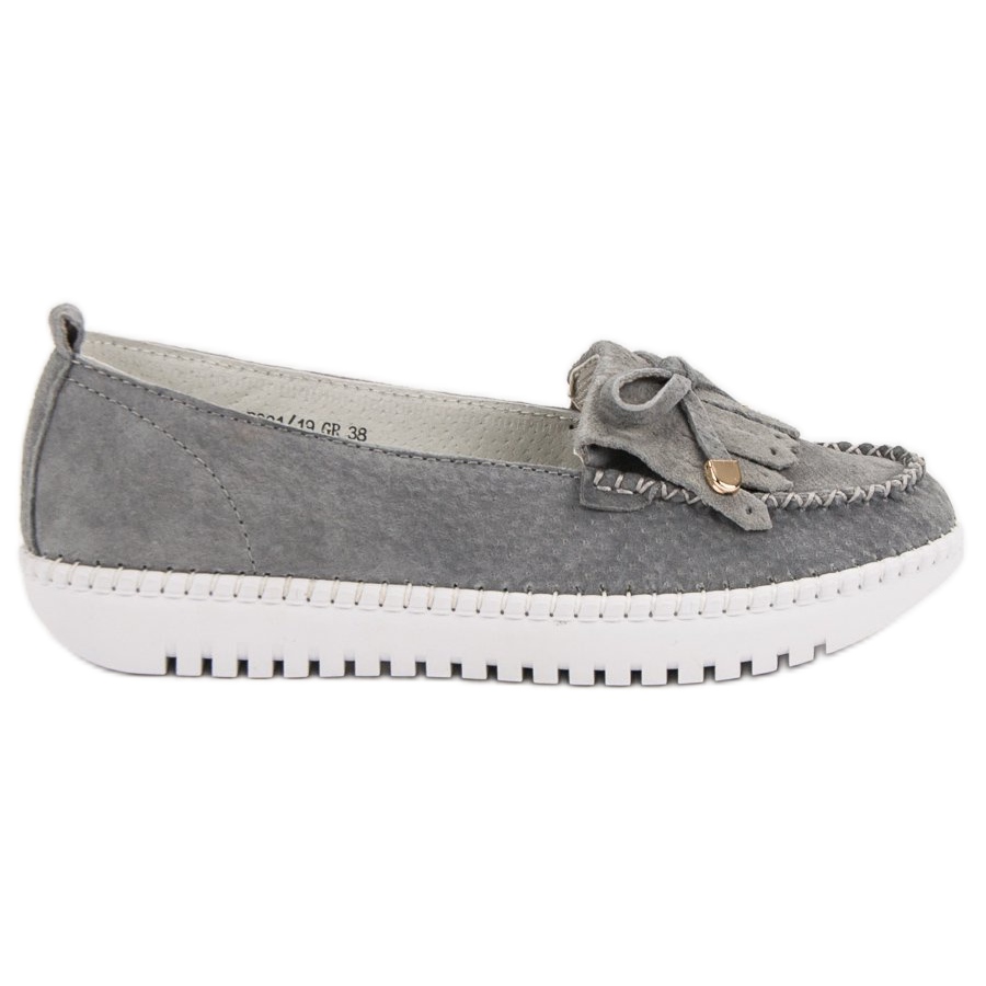 Filippo mockasiner kännetecknas av en dämpad, grå färg som passar perfekt in i en mängd olika stilar - från vardag till lite mer elegant. En ytterligare fördel är iögonfallande detaljer som fransar och en rosett, som ger skorna originalitet och charm.
