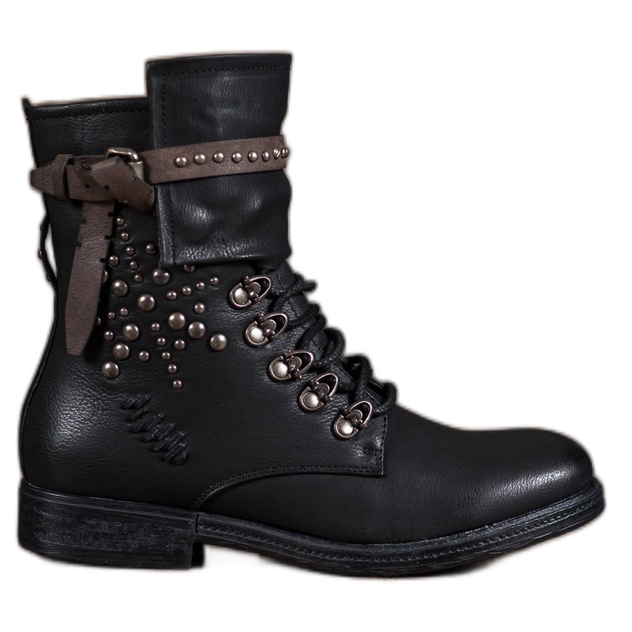 Upptäck stövletter som kombinerar elegans med rockstil - Super Me Fashionabla ankelstövlar med snörning i svart är det perfekta valet för kallare dagar. Tillverkade av högkvalitativt ekologiskt läder, dessa skor ser inte bara vackra ut, utan är också miljövänliga.