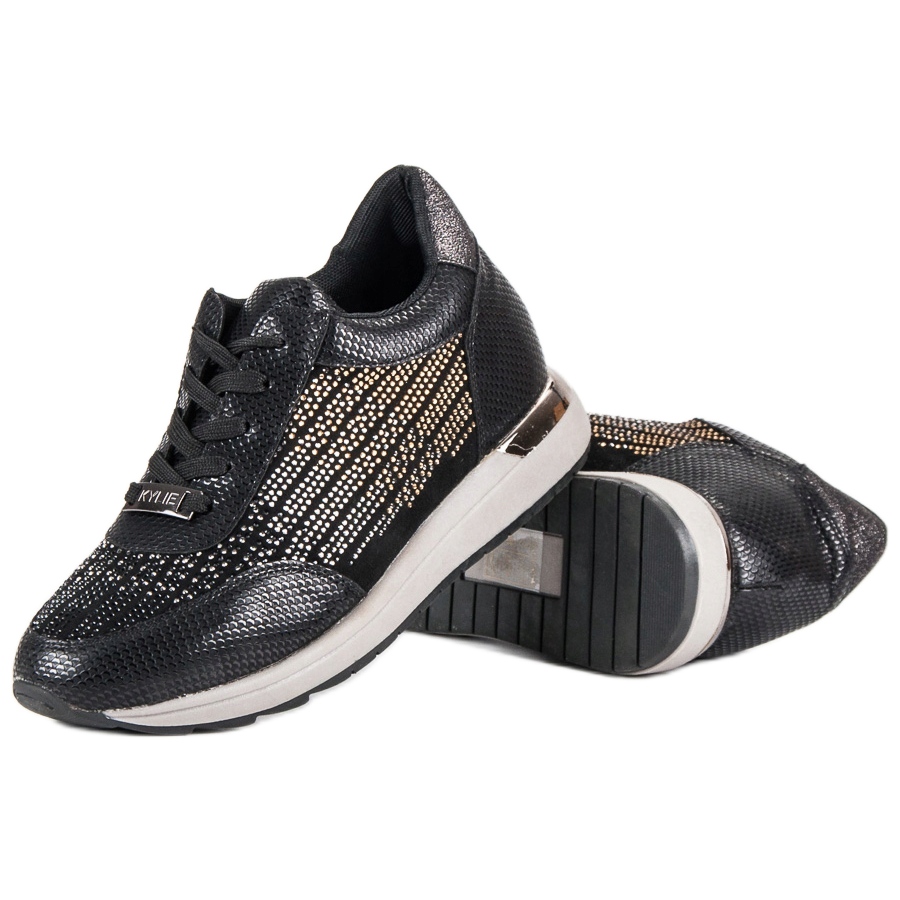 Vi presenterar fashionabla Kylie sportskor i en elegant svart färg, som är ett perfekt förslag för aktiva kvinnor för varje säsong. Dessa skor är gjorda av högkvalitativt textilmaterial och kombinerar stil med funktionalitet. Deras mjuka, inbyggda hälräknare och bekväma innersula i tyg garanterar komfort under långa timmar.