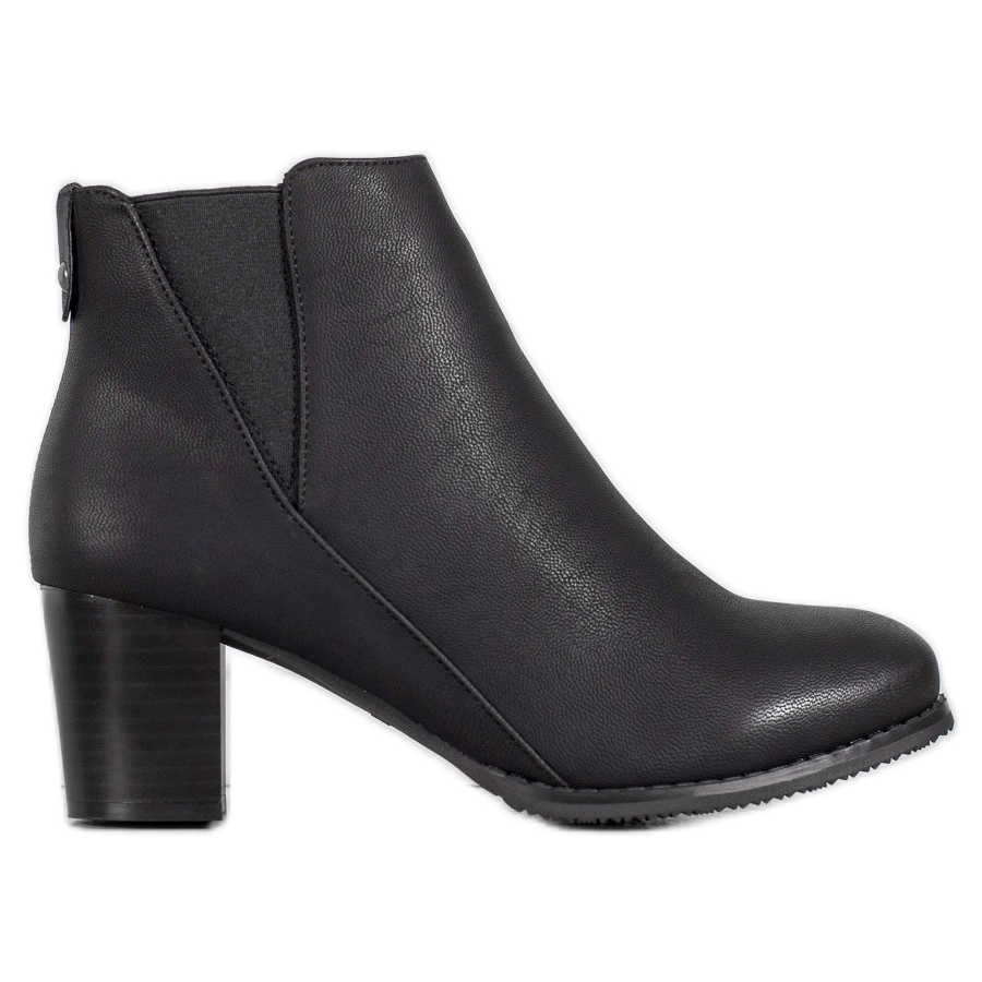 Vi presenterar fashionabla svarta ankelboots för kvinnor från J. Star, som är ett perfekt val för kallare dagar. Tillverkade av högkvalitativt eko-läder, dessa eleganta skor kombinerar stil med komfort i alla situationer. En stabil 6,5 cm blockhäl säkerställer komfort under vardagsbruk, och ovandelen som når över vristen ger klass och chic.