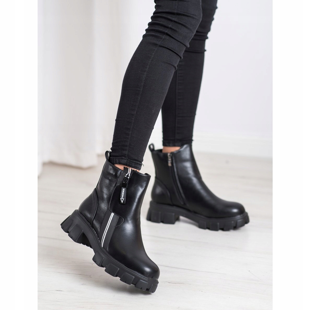 Upptäck elegans och komfort i varje steg med fashionabla Weide ankelboots som perfekt matchar aktuella trender. Dessa svarta stövlar med dekorativ dragkedja är det perfekta valet för kvinnor som värdesätter både stil och komfort. Tillverkade av högkvalitativt ekologiskt läder säkerställer de hållbarhet och estetiskt utseende, och deras klassiska design gör att de matchar många stilar.