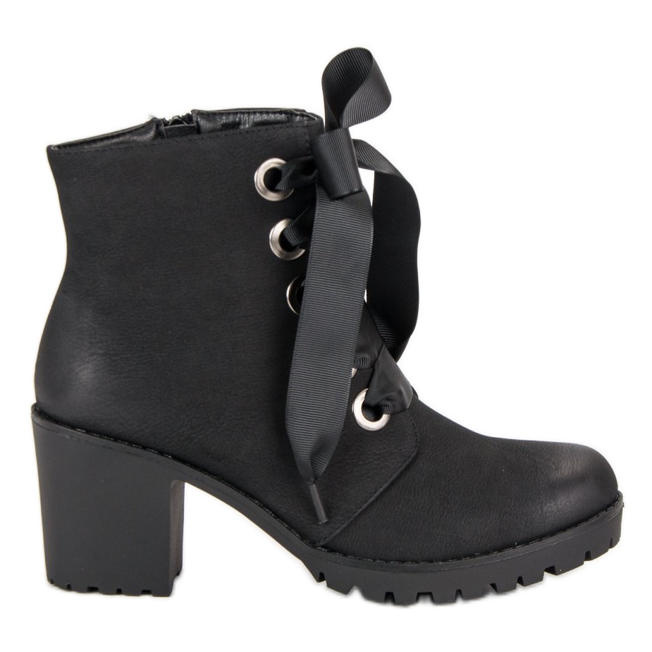 Stövlarna knäpps med dragkedja och har snörning vilket gör dem lättare att ta på och justera. Hälhöjden på 7,5 cm ger en liten ökning, vilket optiskt slankar figuren, samtidigt som den säkerställer stabilitet och komfort när den bärs.