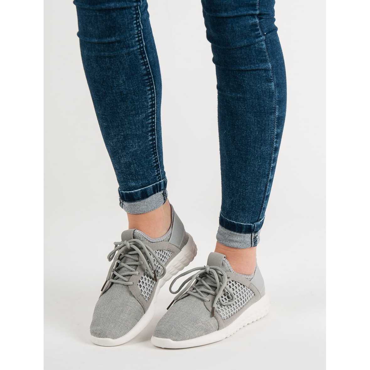 Fashionabla textilgrå skor är ett perfekt val för våren, sommaren, såväl som hösten och vintern, perfekt matchande vardagsaktiviteter. Tack vare sin minimalistiska design kommer denna modell att bli en oumbärlig del av din garderob. Investera i komfort och stil - välj fashionabla textilskor som uppfyller dina förväntningar!