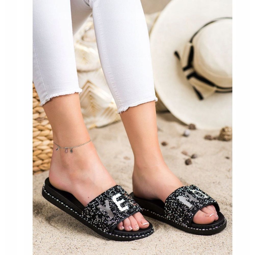 SHELOVET SHELOVET Trendiga tofflor med kristaller svart silver-