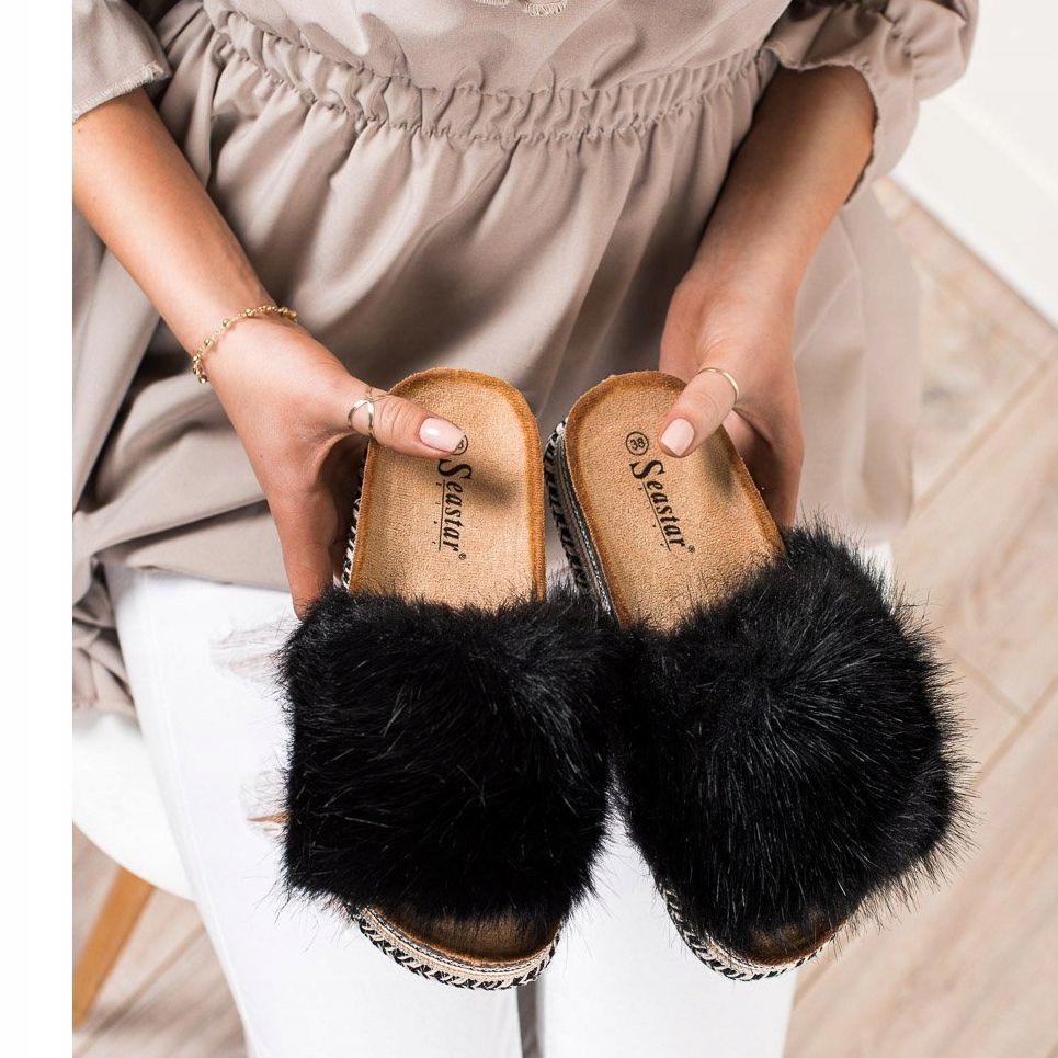 Information: Seastar Trendiga tofflor på en dekorativ plattform svart