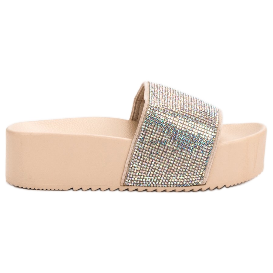 Marquiz flipflops kännetecknas inte bara av sin vackra design, utan också genom sitt noggranna utförande. Ett tjockt bälte med glänsande kristaller ger originalitet, och lätta material gör att bära dem till ett rent nöje. Den 5 cm höga plattformen säkerställer ett stilrent utseende och optimalt stöd för foten, och gummisulan med slitbana garanterar stabilitet även på hala underlag.