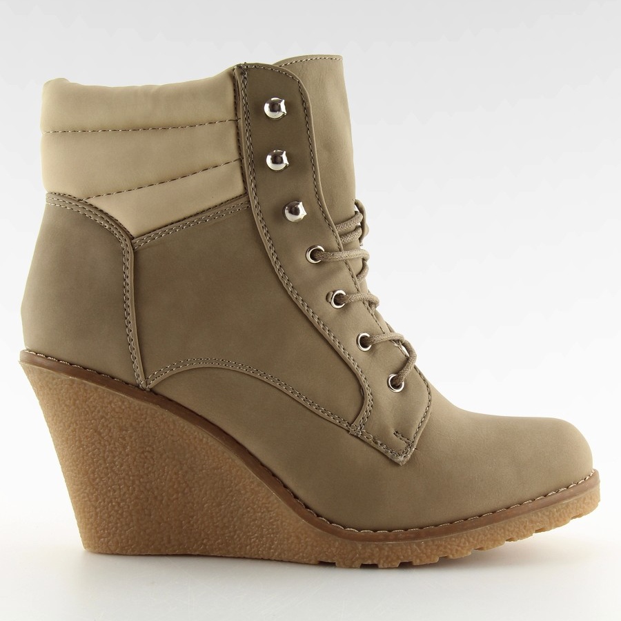 Snygga och universella wedge boots som kombinerar stil med vardagskomfort. HP124C-modellen kännetecknas av en tvåfärgad khaki-överdel med kontrasterande detaljer och fashionabla skumquiltning på överdelen - en subtil accent som ger karaktär till varje styling.