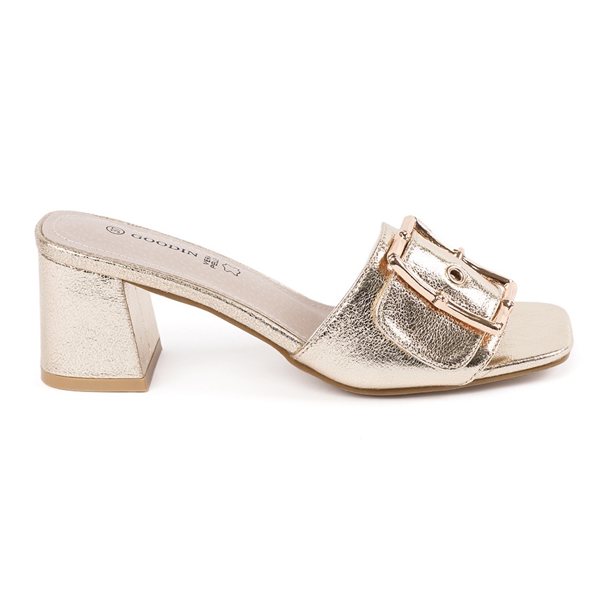 Vi presenterar Tweed Flip Flops i gyllene färg från det berömda Goodin -märket - den perfekta kombinationen av elegans och komfort, vilket säkert kommer att komplettera varje sommarstylisering. Dessa flip flops kännetecknas av en metallisk finish, vilket ger dem en speciell glöd och lockar deras ögon vid varje steg.