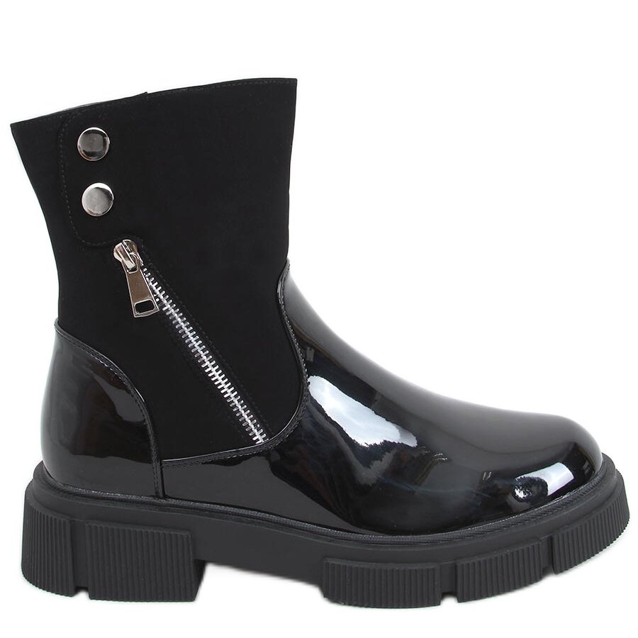 Upptäck elegans och komfort i Unni Black patentkängor, som perfekt matchar de senaste trenderna. Dessa svarta ankelboots för kvinnor med hög sula kombinerar en klassisk look med en modern stil. Tillverkade av högkvalitativt ekopatentläder, med matta accenter, är de inte bara visuellt attraktiva, utan också iögonfallande.