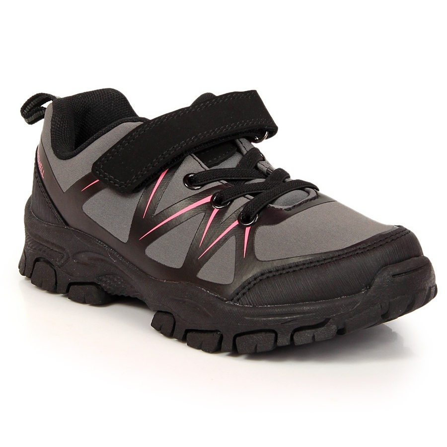 American Club Children's Trekking Shoes - Praktisk, vattentät och lätt att ta på sig. De grå -svarta färgerna matchar vardagliga och sportstyliseringar, och de låga snitten fungerar på våren och höstdagarna.