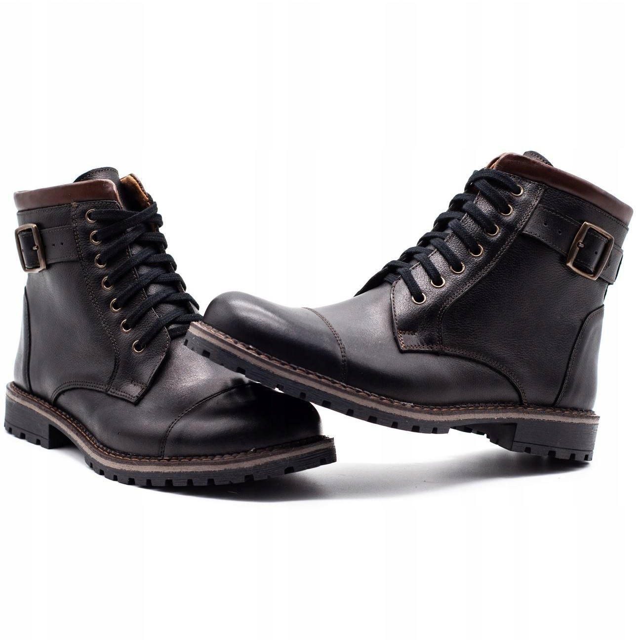 Deras militär-casual design gör att dessa stövlar passar bra med olika stilar och är ett perfekt komplement till både vardagliga och mer eleganta outfits. Den höga ovandelen av skorna är dekorerad med ett spänne, vilket ger dem karaktär och unikhet.