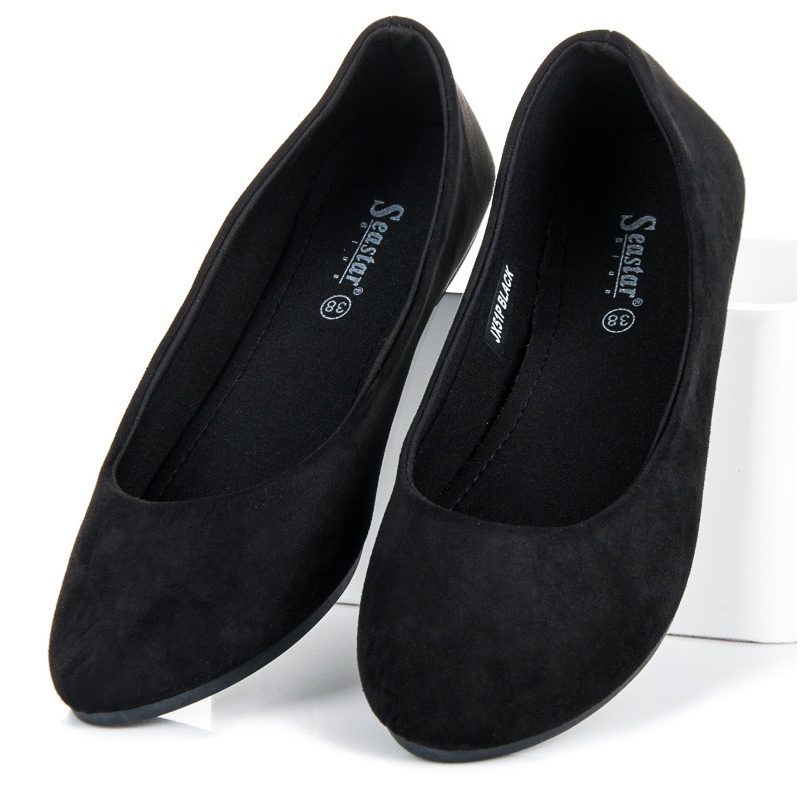 Upptäck elegansen och komforten hos Seastars vårsvarta balettlägenheter. Dessa snygga skor är det perfekta valet för kvinnor som värdesätter komfort och moderiktiga lösningar. Ballerinaskorna är gjorda av ekologiskt läder av hög kvalitet och kombinerar estetik med omsorg om miljön.