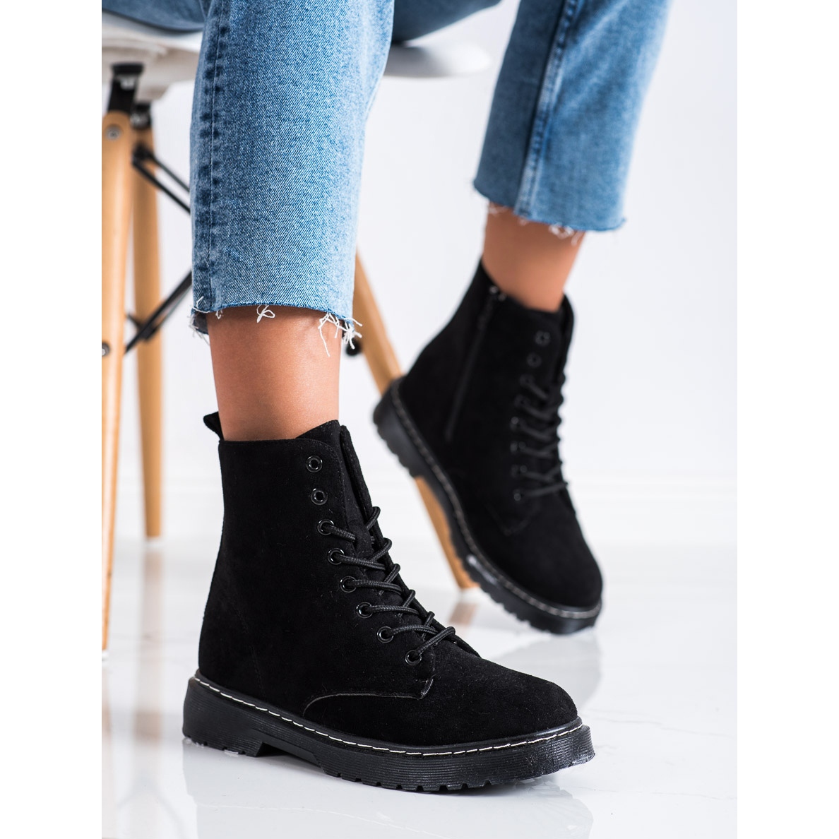 SHELOVET Mocka Trappers med isolering i svart är ett perfekt val för den kommande höst/vintersäsongen. Dessa snygga ankelboots kombinerar komfort och ett elegant utseende, vilket gör dem till det perfekta komplementet till alla avslappnade outfits.