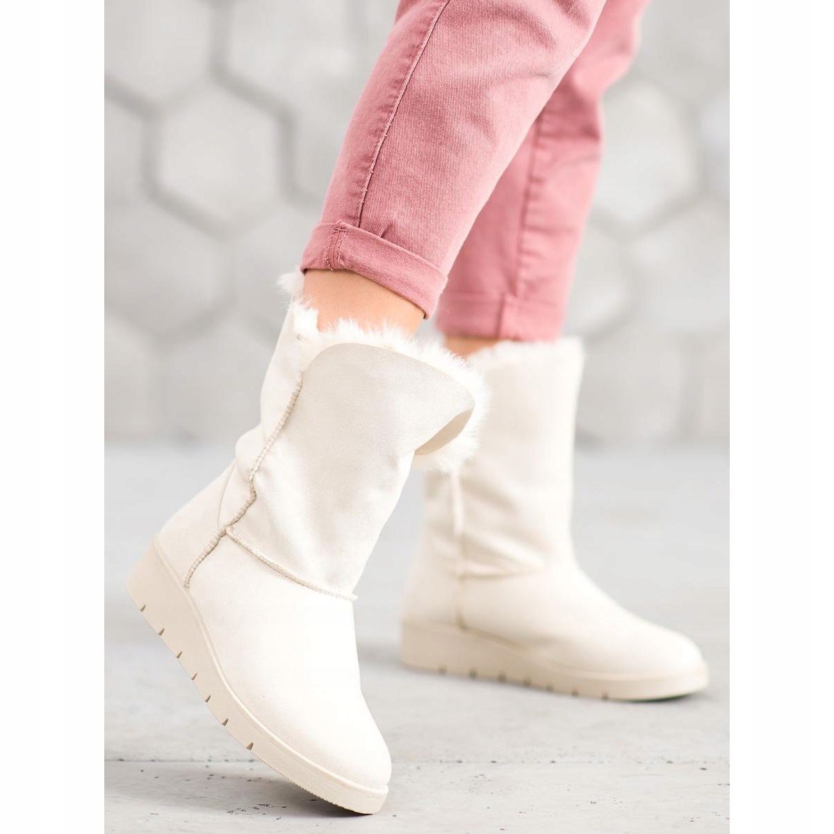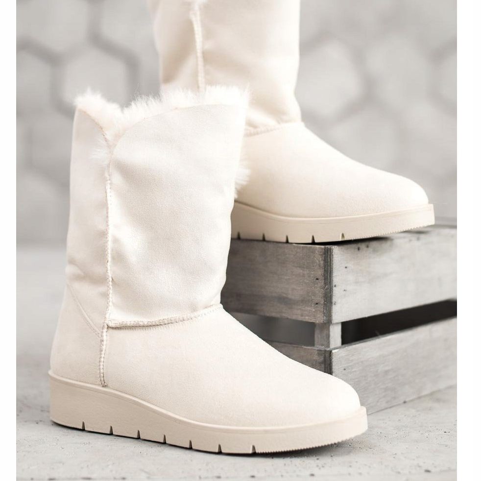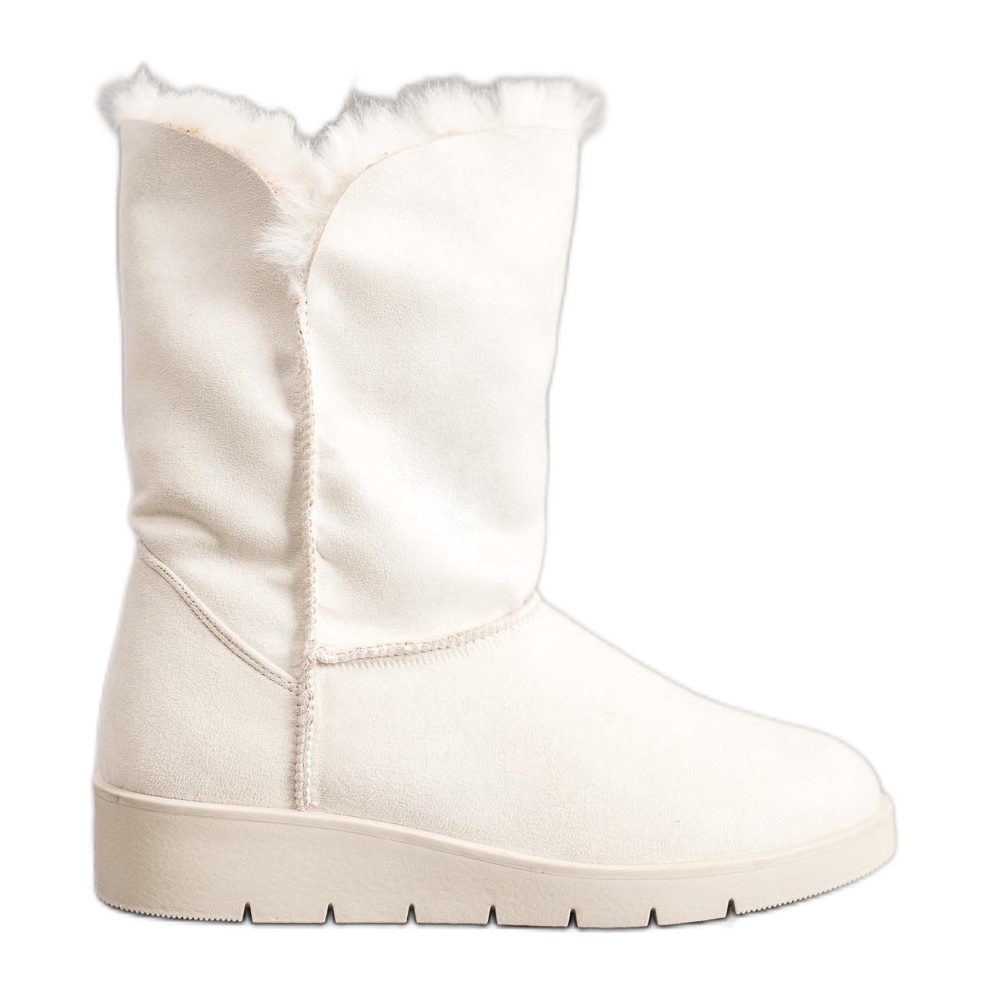 Kylie Warm mukluks i vitt är synonymt med modeminimalism, som passar in i de senaste trenderna. Tack vare den övre bredden från 34 till 36 cm och möjligheten att vända ovandelen uppåt kan du enkelt anpassa dem till din figur. I sin tur garanterar den syntetiska sulan med slitbana stabilitet och grepp på olika underlag.